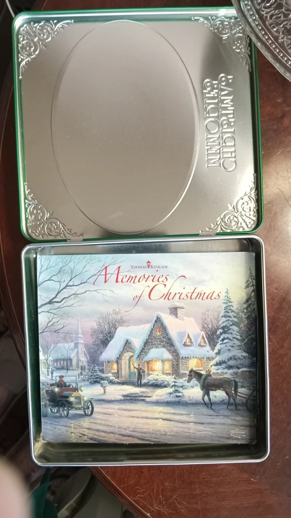 Selling a Thomas Kinkade Christmas Memories CD set in its original tin. It includes three CDs: Memories of Christmas. Features various popular and classical Christmas songs performed by various artists and the 101 strings orchestra Perfect for getting into the holiday spirit!