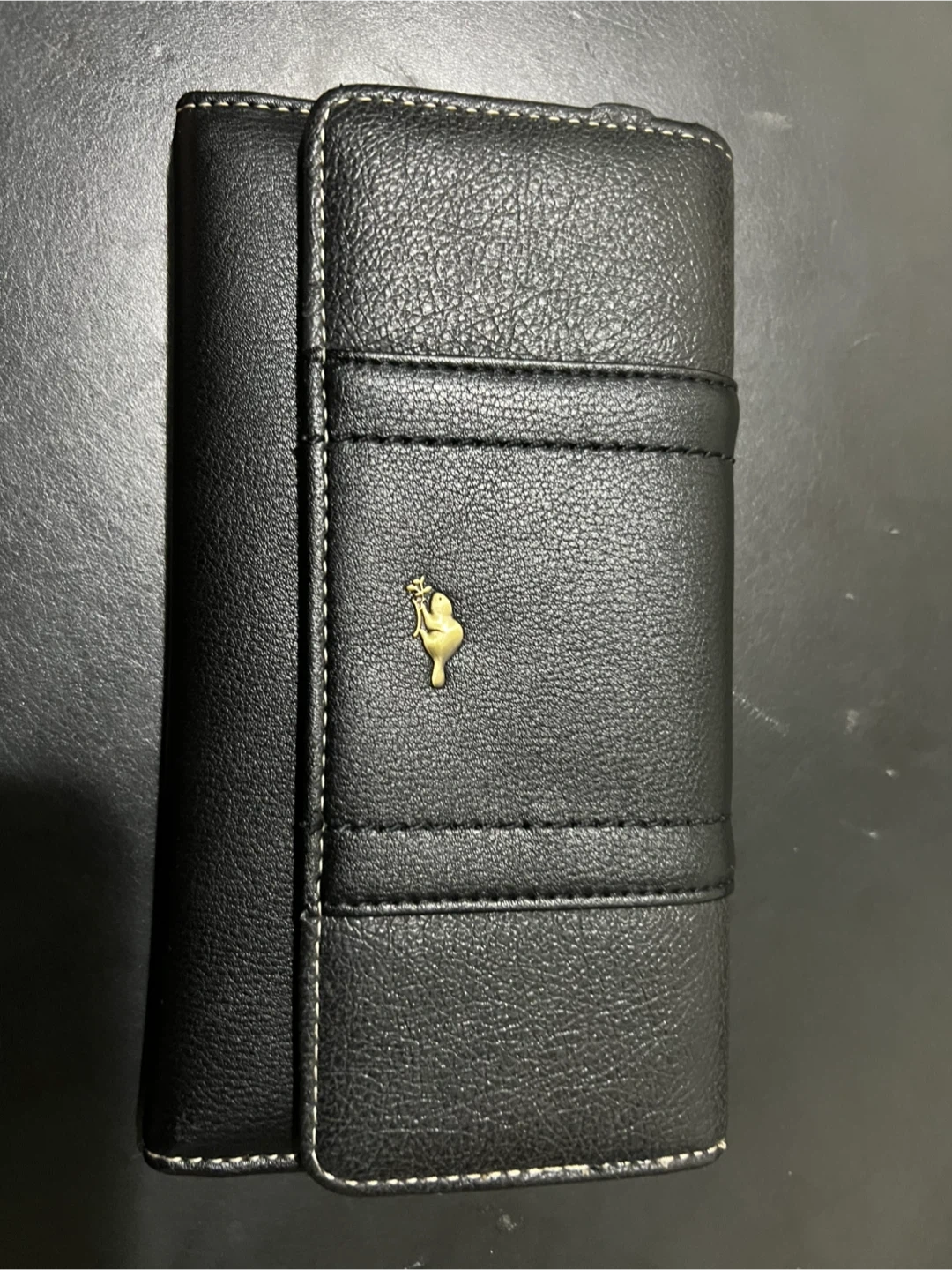 Selling a Roots black leather tri-fold wallet. It's in good condition and has lots of space for cards and cash. A cute little beaver logo is on the front!