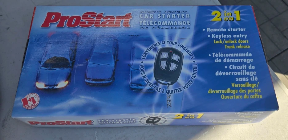 Selling a brand new ProStart Remote Car Starter, still in its original packaging! It's a 2-in-1 system that offers both remote start and keyless entry features. You can lock/unlock doors and even release the trunk with it.