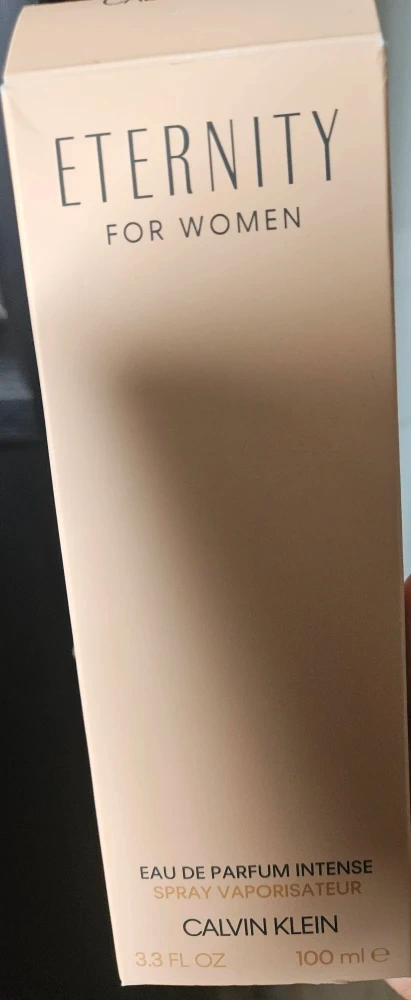 Selling a bottle of Calvin Klein's Eternity for Women. It's an Eau de Parfum Intense spray, with 3.3 fl oz (100ml). Perfect if you love a classic, elegant scent!