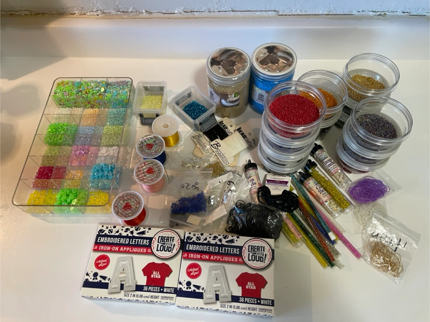 Selling a collection of craft beads and jewellery making supplies! There's a variety of colours and styles, perfect for all sorts of projects. Great for anyone who loves to create their own jewellery or add unique touches to clothing and accessories