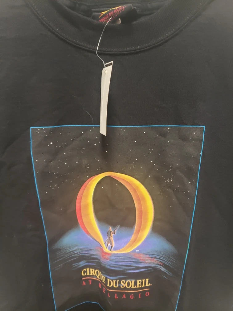 Selling a black Cirque du Soleil t-shirt. The shirt features the "O" show at the Bellagio. Great for any fan! Coffee mug, Extra souvenir cup.