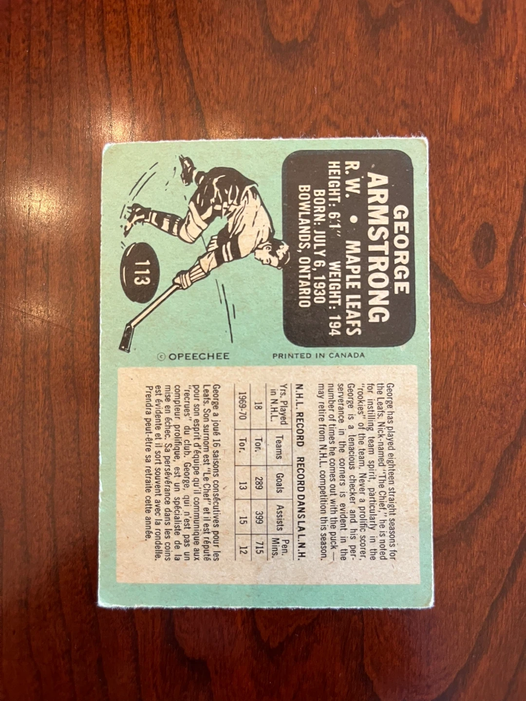 Buy & Sell1970-71 OPC O PEE CHEE Hockey #113 GEORGE ARMSTRONG1970-71 OPC O PEE CHEE Hockey #113 GEORGE ARMSTRONG$101970-71 OPC O PEE CHEE Hockey #113 GEORGE ARMSTRONG0 chats·0 favorites·2 viewsSELLERJimGlen Abbey221 reviewWHERE TO MEETFriars Ct
