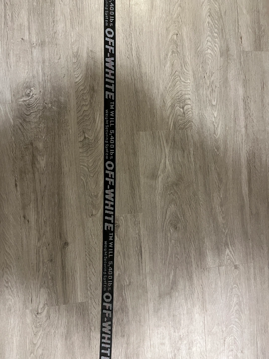 Here's an Off-White industrial belt. It's a weight securing system. TM WILL 5,400 lbs.