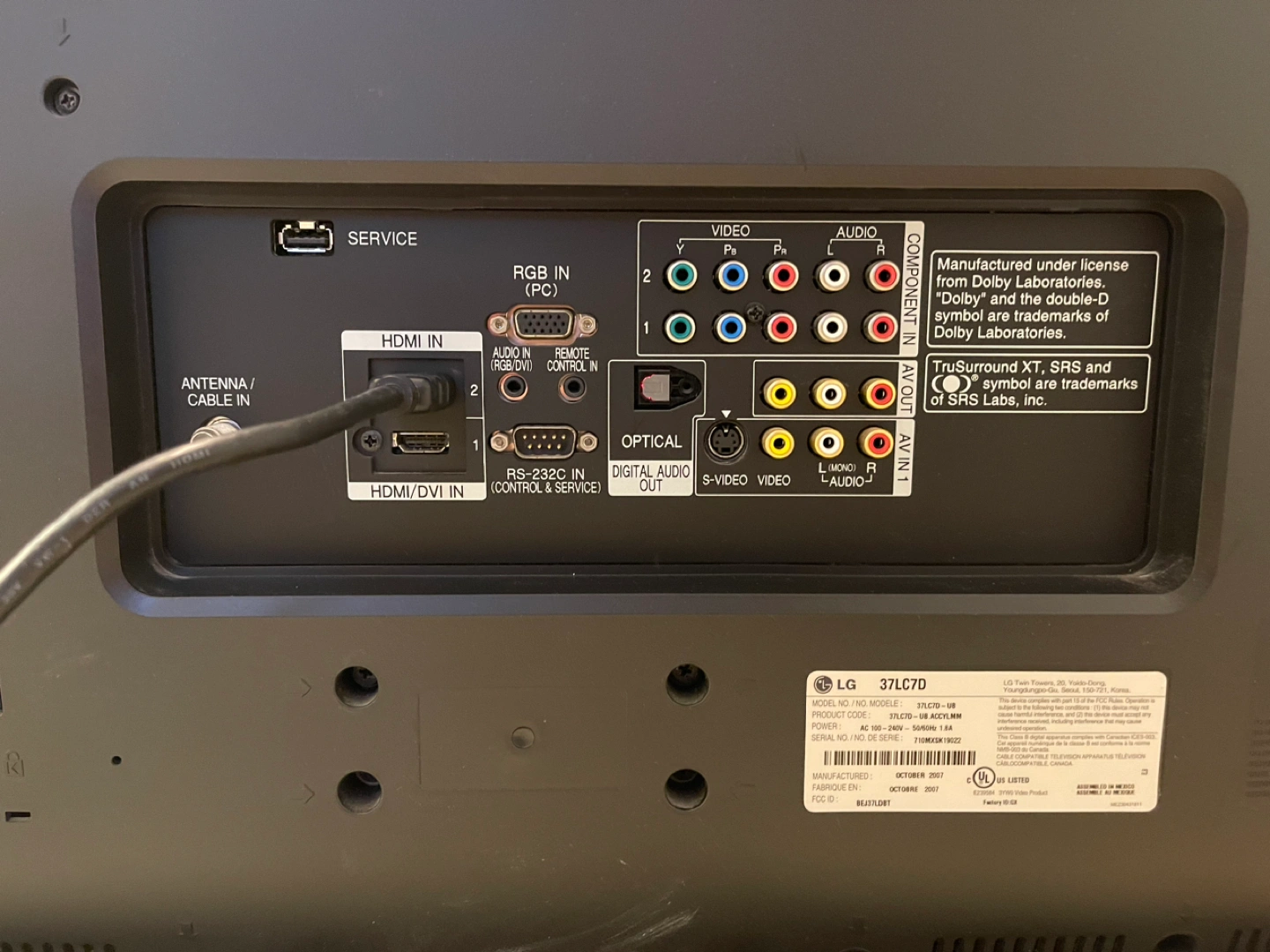 LG 37” LCD television (Model #37LC7D)