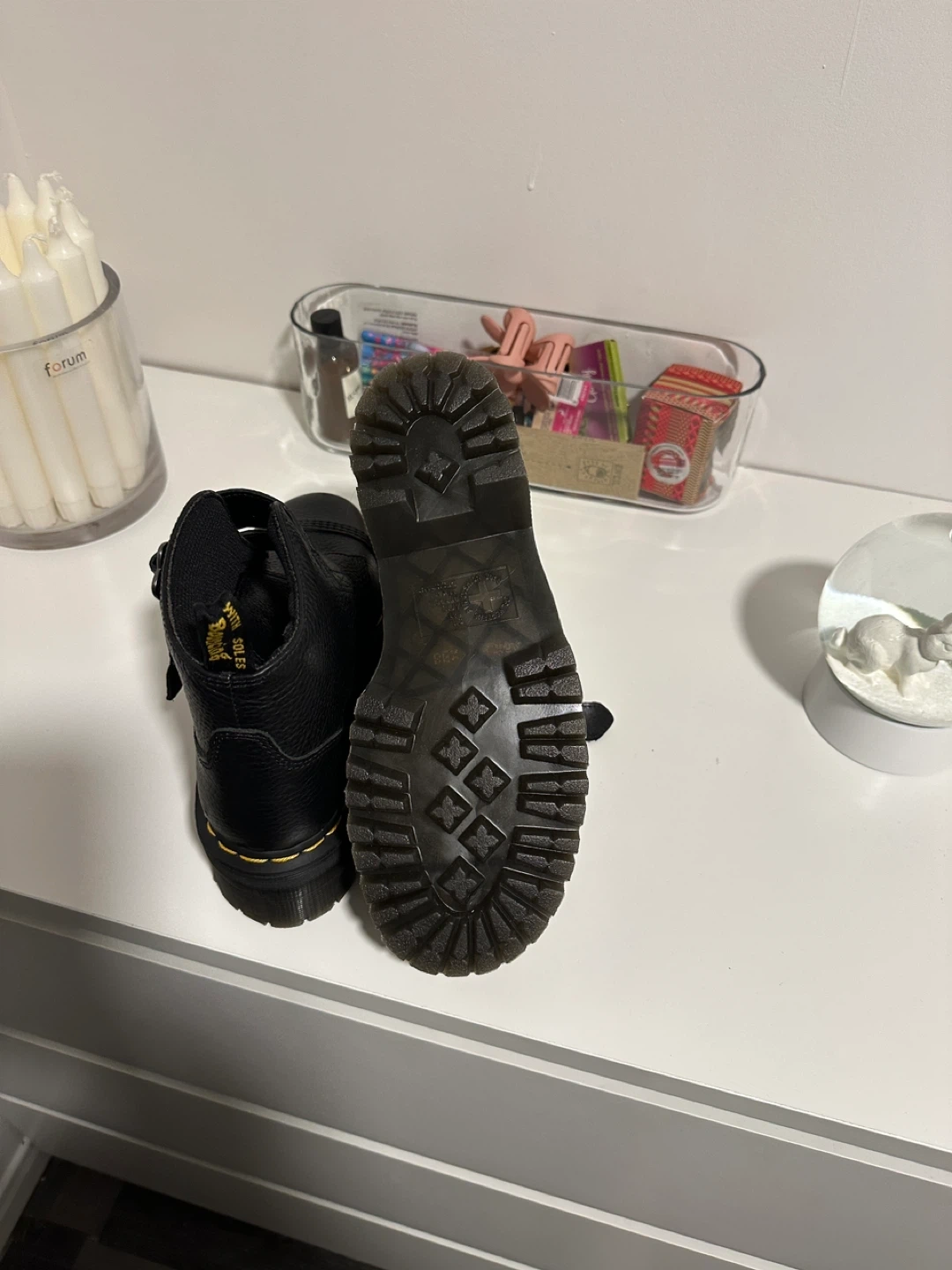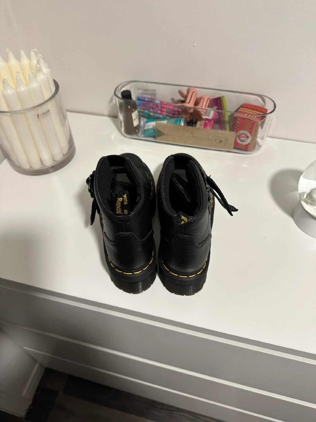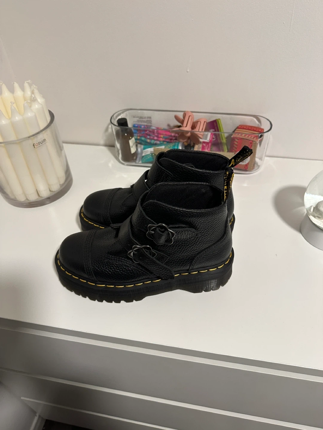 These Dr. Martens boots are in great shape! They feature a unique buckle design and a chunky platform sole. Perfect for adding some edge to your outfit. Size 7.