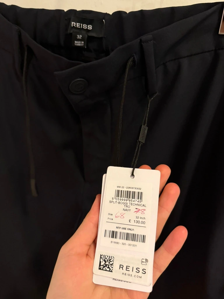 Brand new with tags Reiss Split-Boggit Technical Trousers in navy, size 32. These trousers are in excellent condition and ready for a new home! Originally bought for £130.00