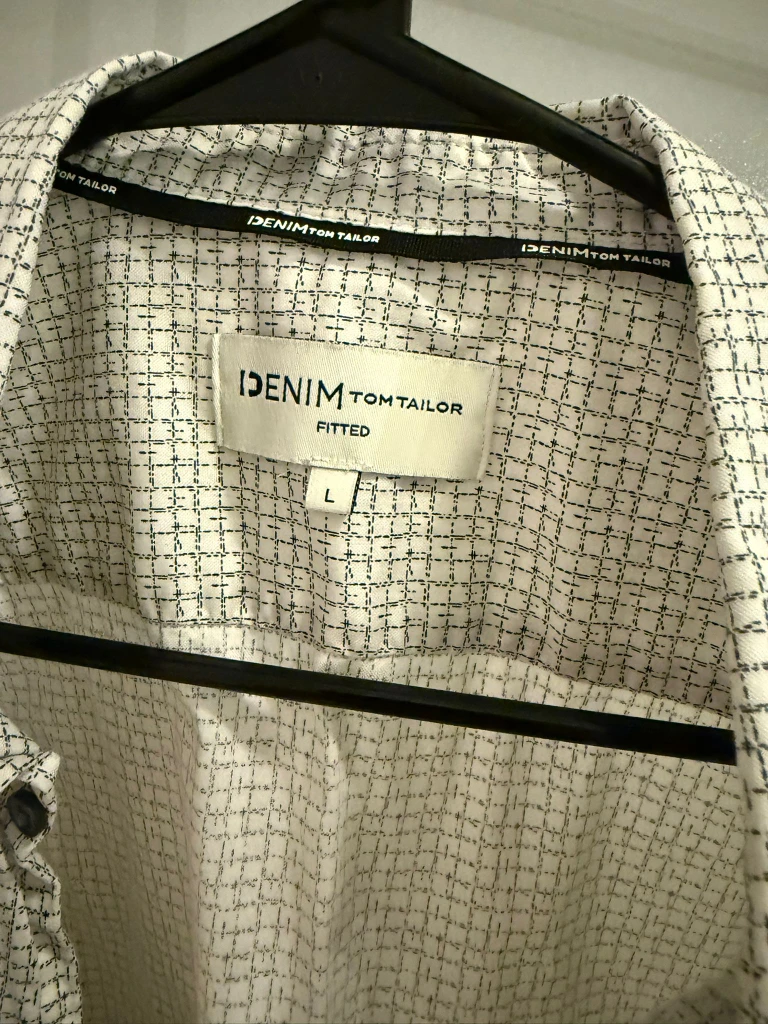 Selling a DENIM TOM TAILOR fitted shirt in size L. It's in great condition and ready for a new home! The shirt features a stylish pattern and is perfect for casual wear.