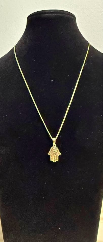 18 inches long 18k Gold fill micro Cuban chain with colorful evil eye and Hamza hand pendant
