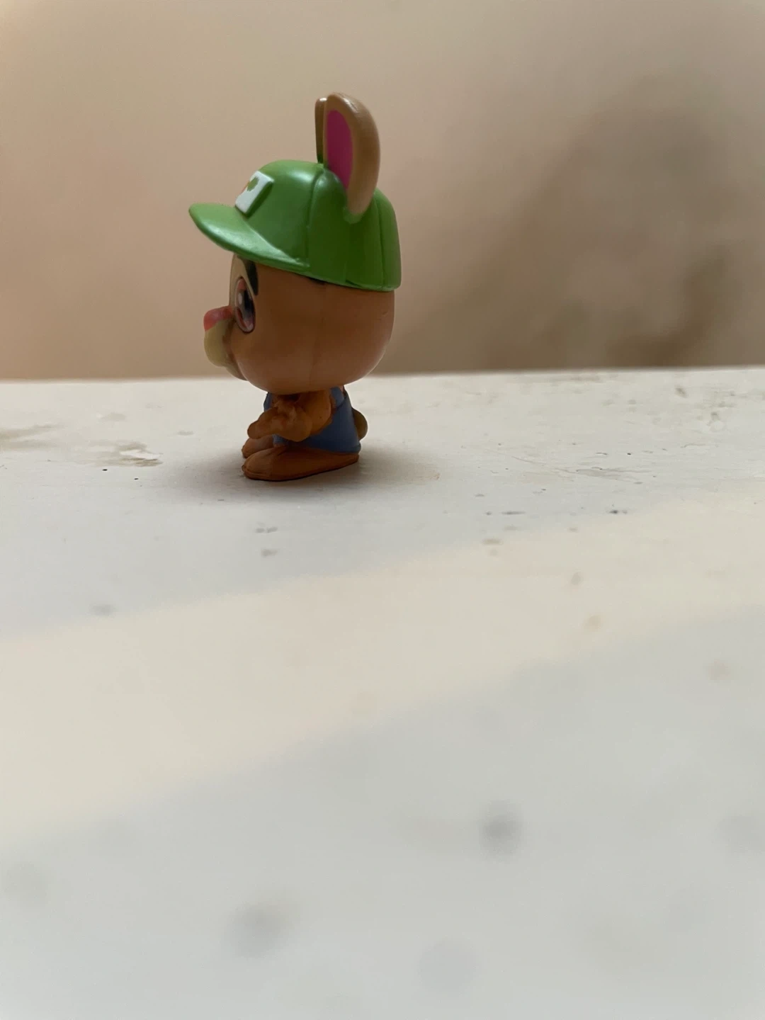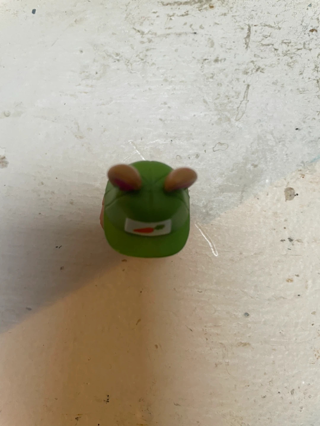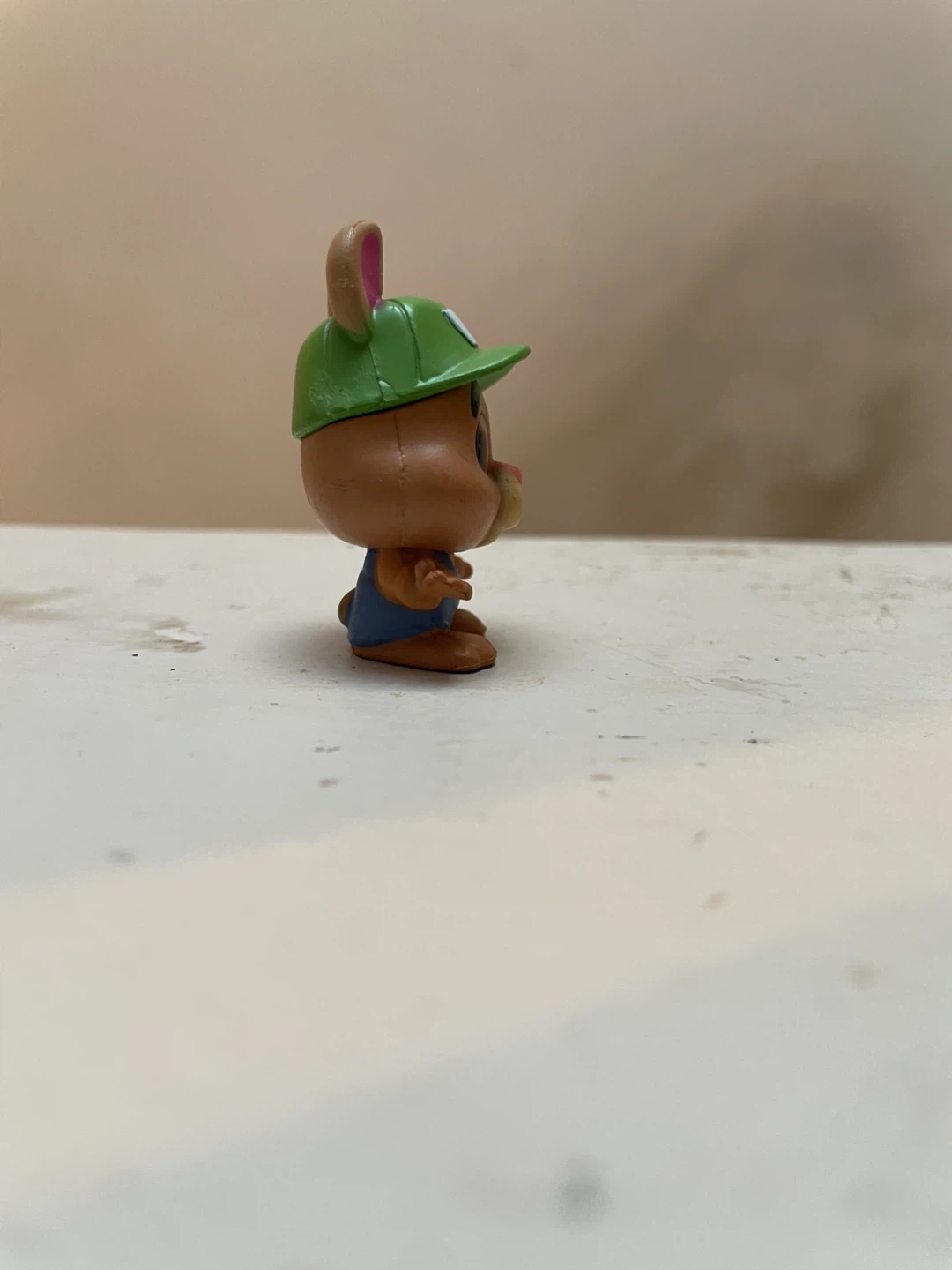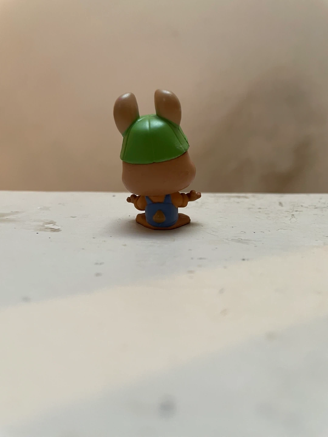 Here's a cute little zootpoia bunny figurine! It's wearing a green hat and overalls, and would look great on a shelf or desk