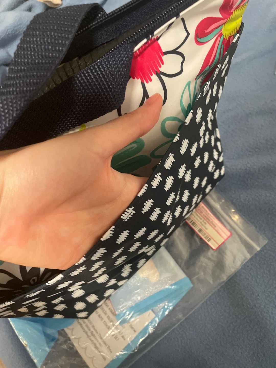 Selling a brand new Thirty-One Gifts Scoop Daisy Thermal Tote! It features a cute black and white polka dot pattern on one side and a floral pattern on the other. Perfect for keeping your food and drinks cool on the go