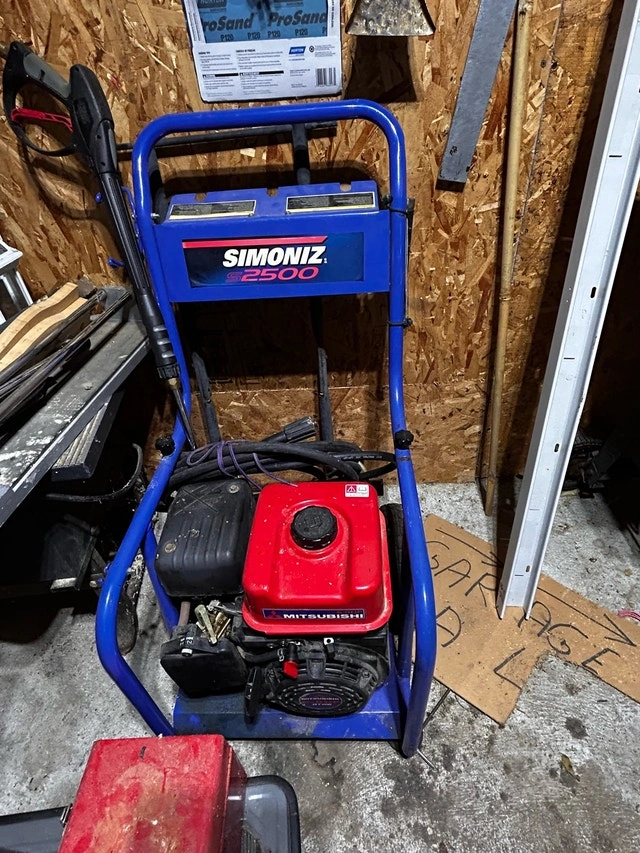 I'm selling my used Simoniz 2500 pressure washer, a robust machine powered by a 6.0HP Mitsubishi engine. It’s ready to tackle any outdoor cleaning task you throw its way, from grimy sidewalks to stubborn stains on your deck. The unit has some cosmetic wear, but it still has plenty of life in it. * **Brand:** Simoniz * **Model:** 2500 * **Engine:** 6.0HP Mitsubishi I've priced it to sell at $275.00. The price is based on similar models currently listed on Kijiji. It's more than fair for a machine that still packs a punch! Please note that if you're reading this, the pressure washer is still available and waiting for a new home. Cash only