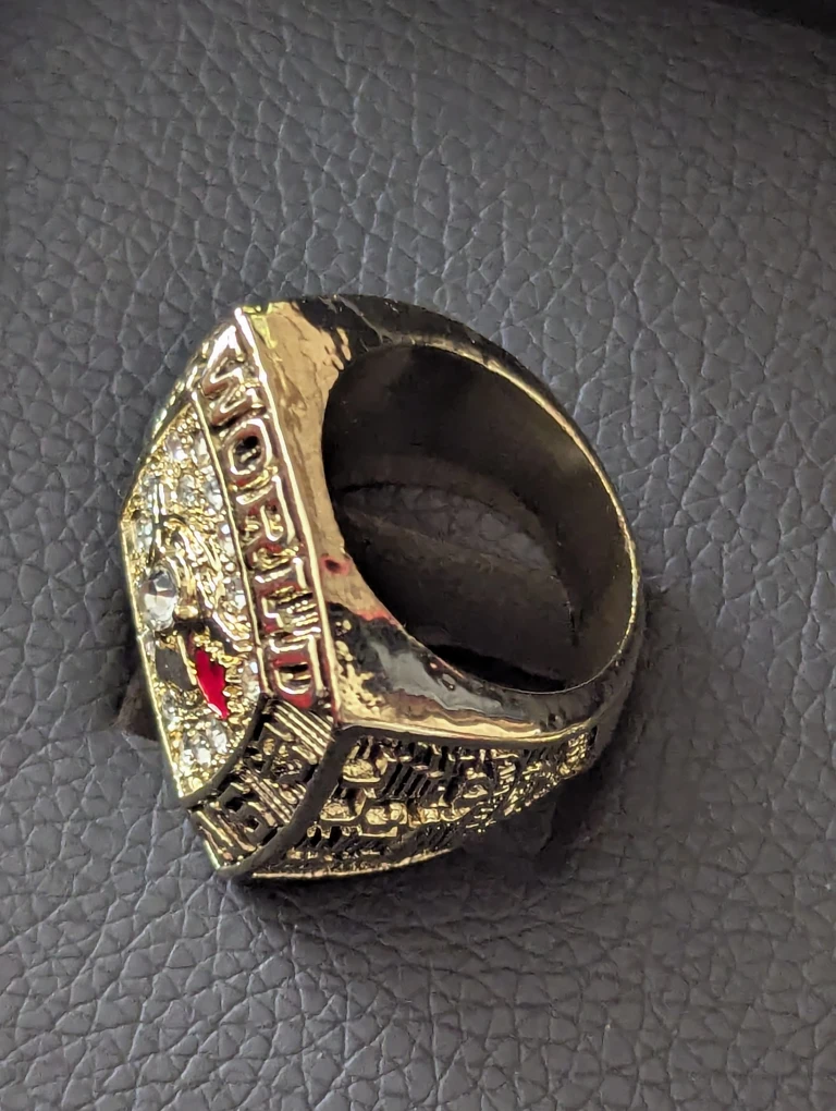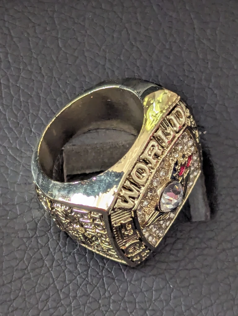 The championship ring set is inspired by the 1992 Toronto Blue Jays championship, making it a unique and collectible piece of jewelry.