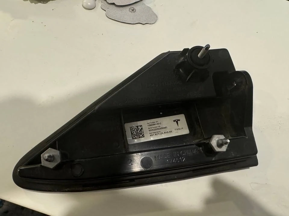 Selling a used Model X Rear right side reflector for refreshed model Xs. I bought this, but Tesla doesn't install parts that aren't sourced from them, so they installed a new one for me. Part number is [hidden information]-C. There are some scratches if you look up close, but no dents or broken parts.