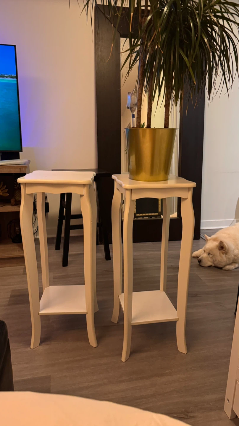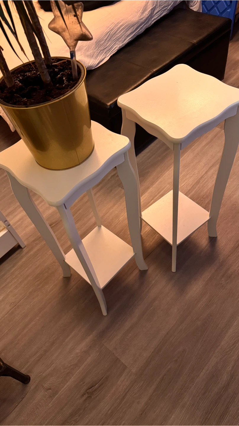 Selling a pair of cute white wooden plant stands! They're in great shape and would look lovely in any room. Perfect for displaying your favourite plants or other decorative items