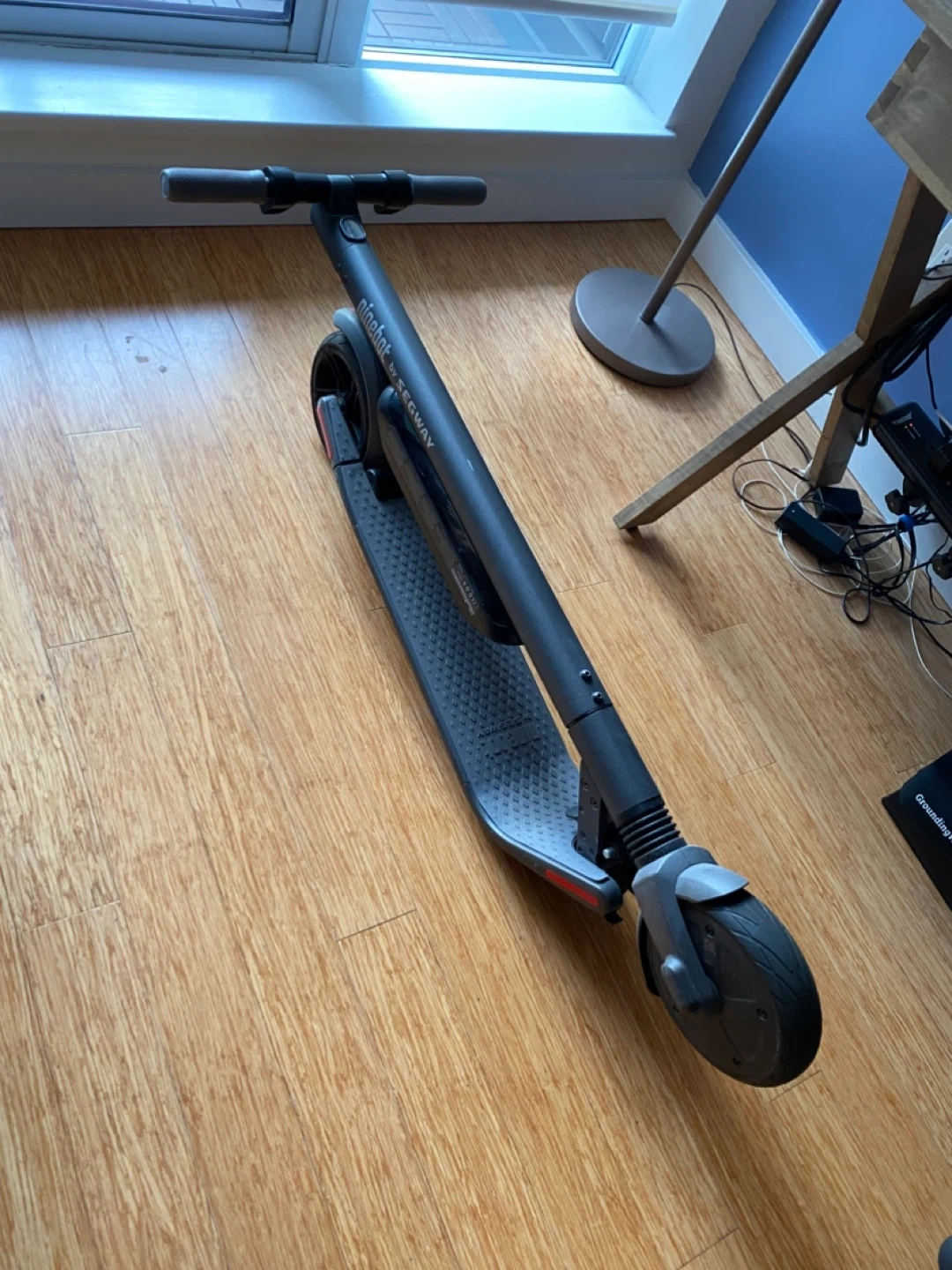 Selling my Ninebot by Segway electric scooter. It's in great shape and ready for a new owner! Perfect for getting around town. Bought in 2020 but only used it very sporadically for 2 summers to and from work! My total mileage is only 210.8km as I did not use it much! Only used it when it was too hot to walk to work! I bought an external battery pack in 2023 to help with inclines and also a wall mount to store it at home (see pics). Spent around $1500 for all! Selling it for only $700 for all! In mint condition!