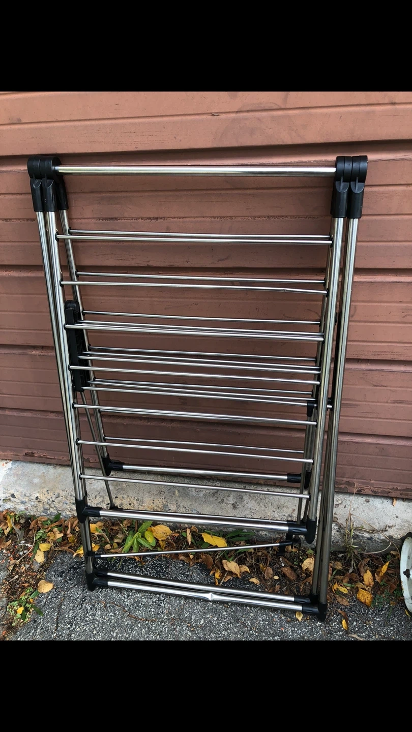 Selling a foldable clothes drying rack! It's in great shape and perfect for saving space when not in use. Folds up easily for storage