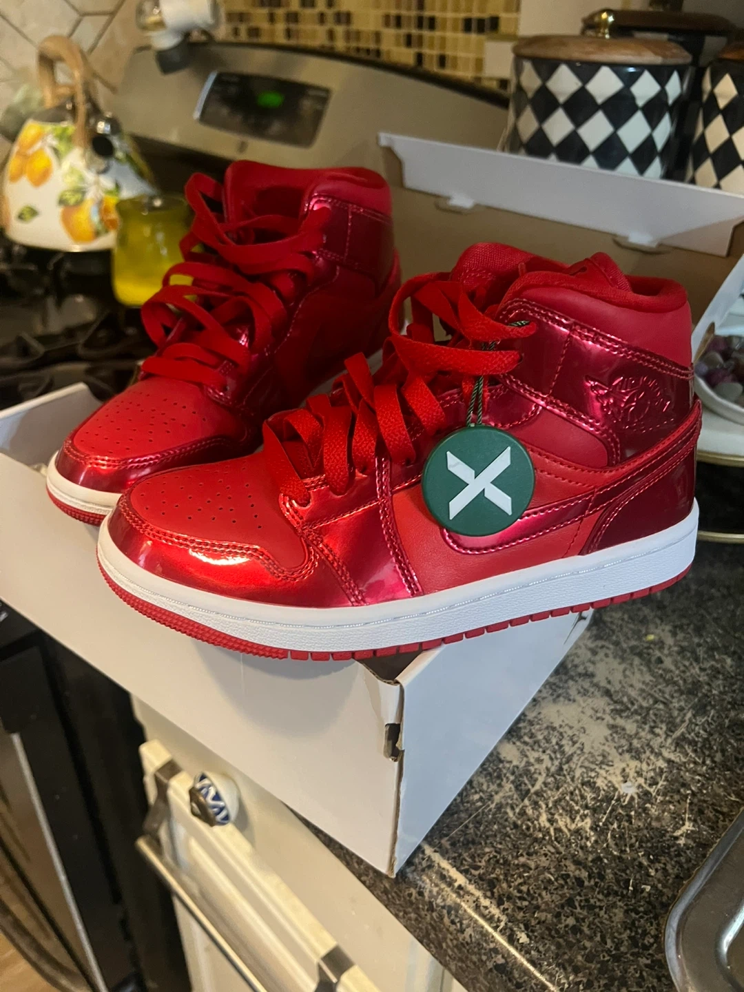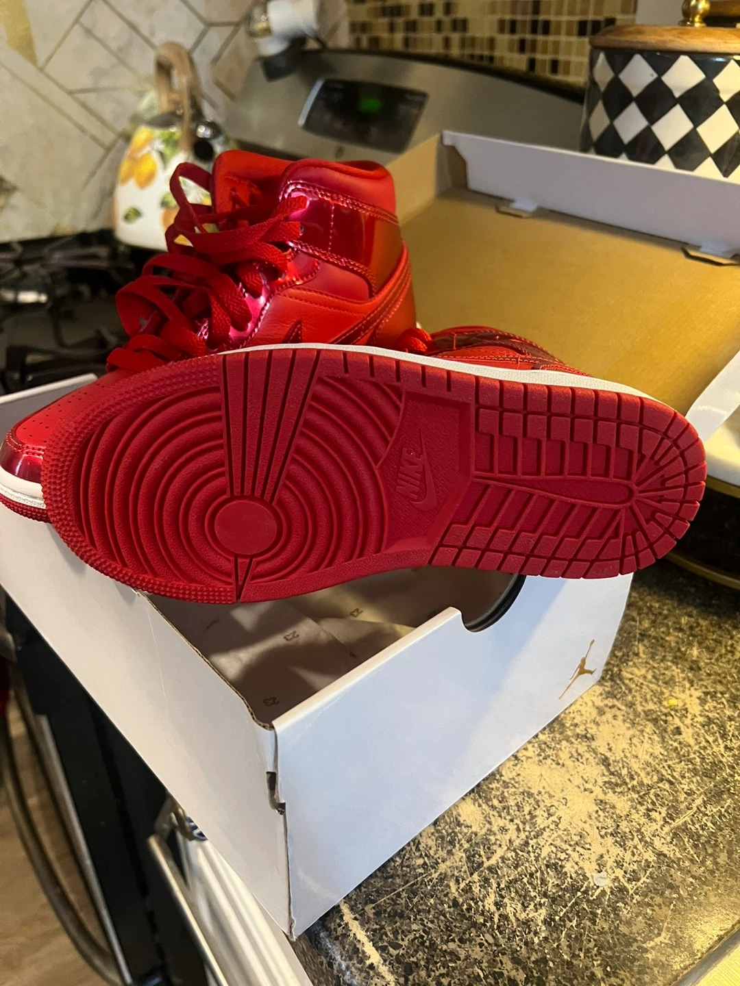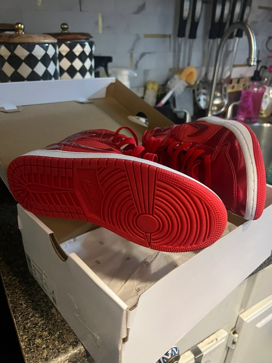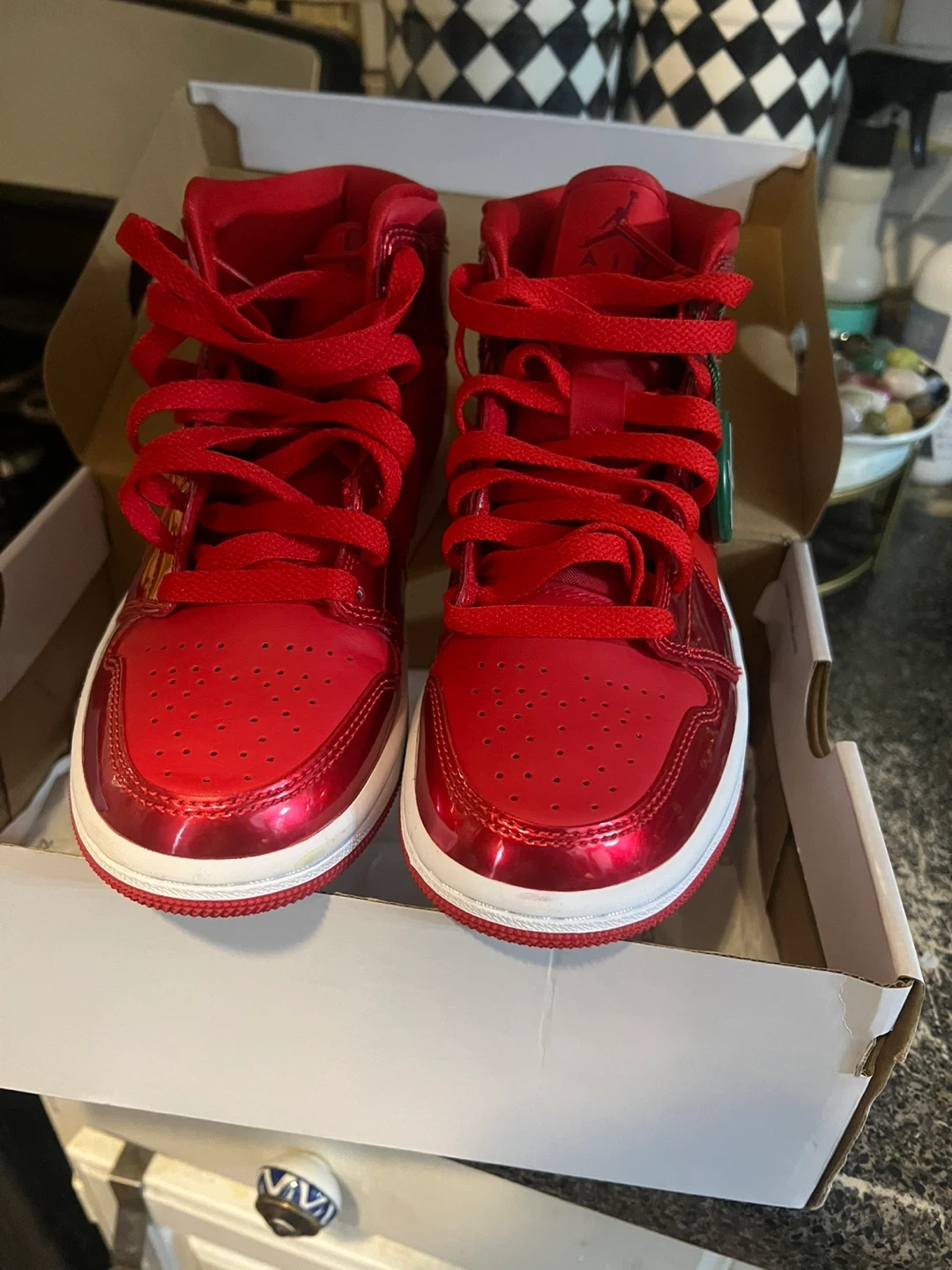 Selling a pair of red Nike Air Jordan 1 Retro High sneakers! They come with the original box. These are a stylish and iconic addition to any wardrobe
