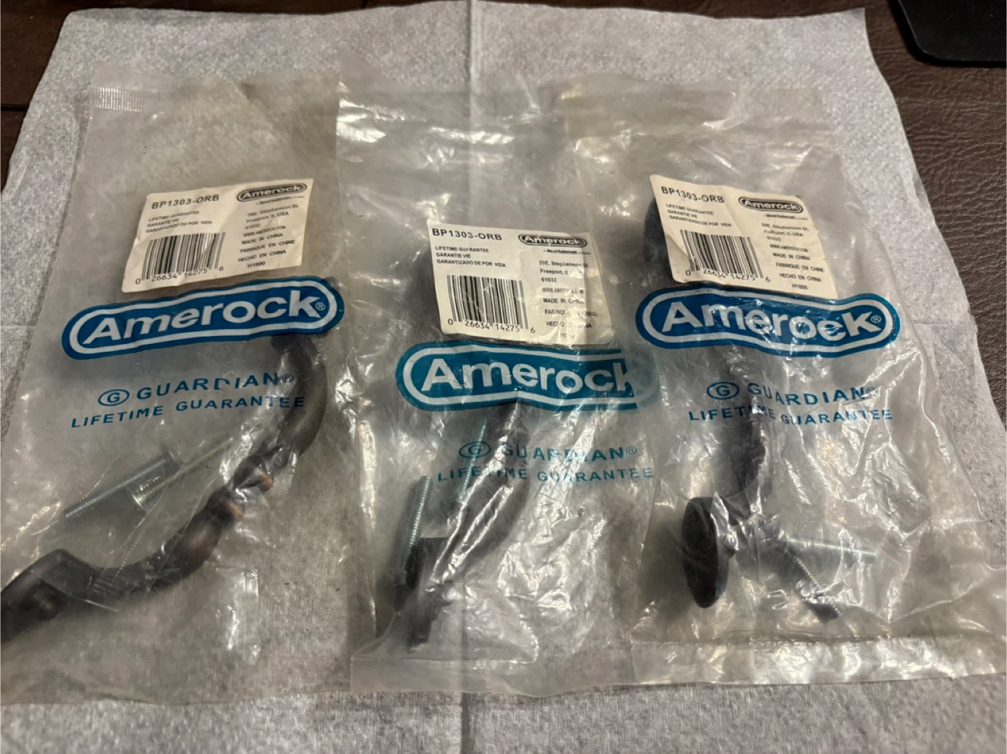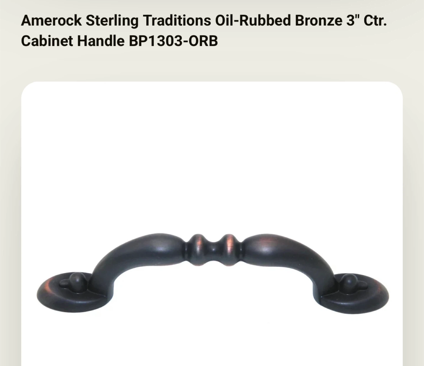 These are new Amerock Sterling Traditions Oil-Rubbed Bronze 3" Center Cabinet Handles, model BP1303-ORB, still in their original packaging. These handles feature a classic design with a rich, dark bronze finish, perfect for adding a touch of elegance to your cabinets. They are unused and ready to install.