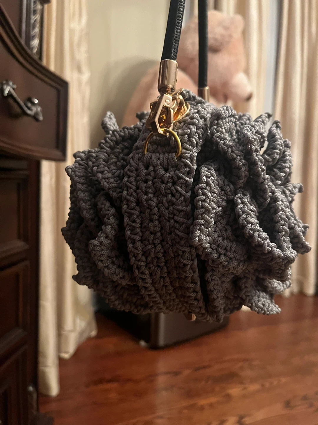 Selling a lovely grey crochet flower bag. It's in great condition and has a unique, eye-catching design. Made with girls in mind, but designed so that anyone can use it .Perfect for adding a touch of elegance to any outfit!