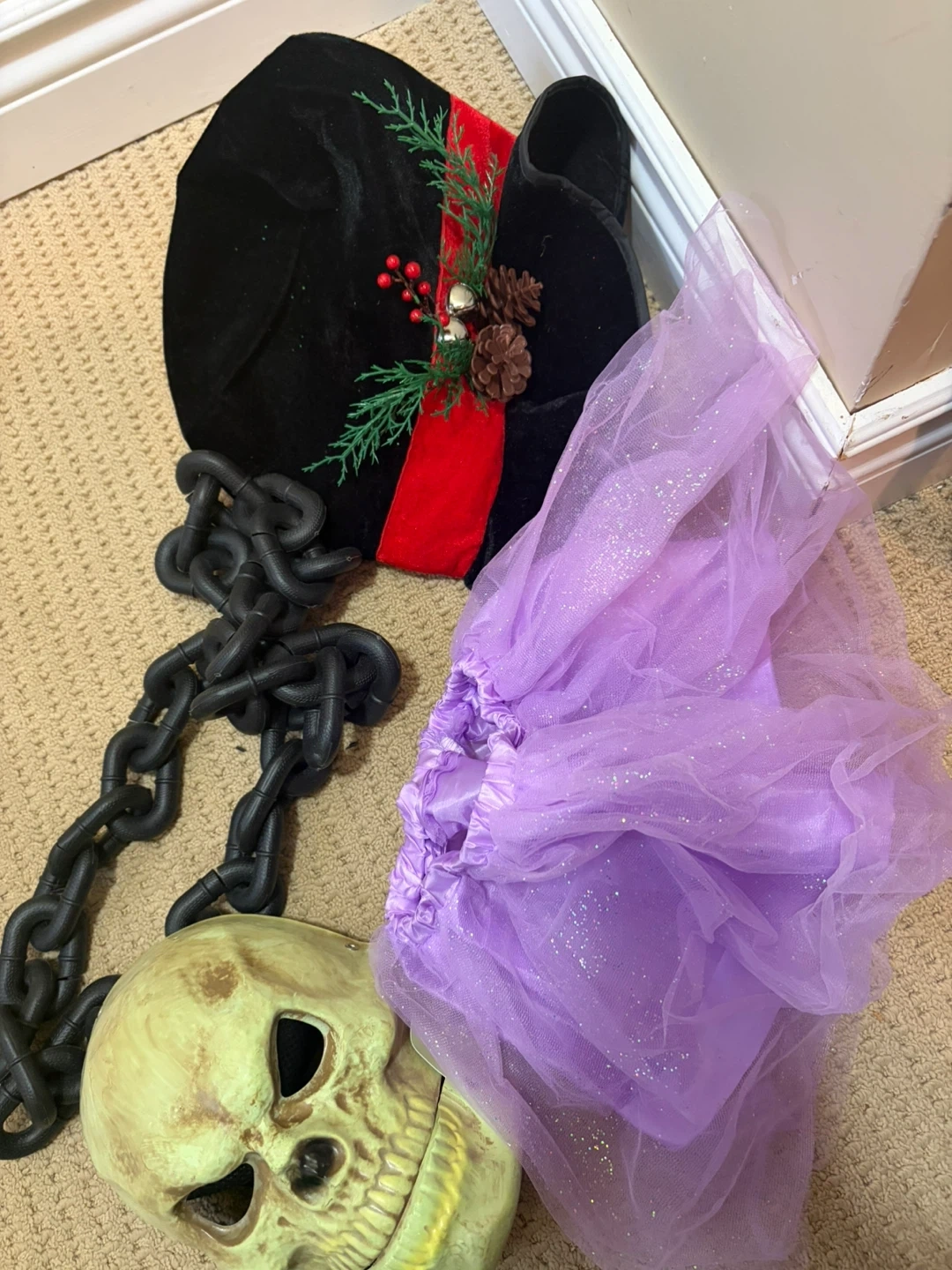 I'm offering all the items shown in the pictures, including a backpack, toys, Halloween and Christmas items, and a pair of boots (size 7.5). Please note, I'm not able to split them up — you'll need to take everything together. Thank you so much!