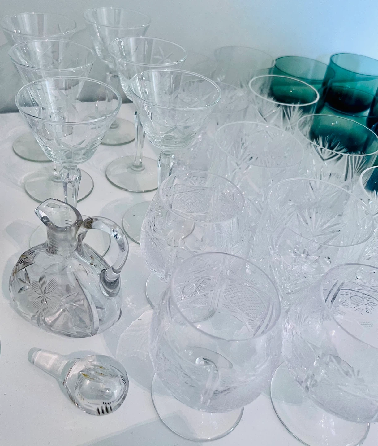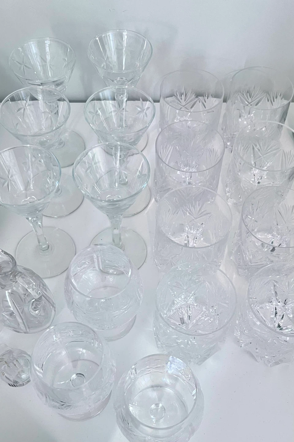 Antique Crystal Set - Glasses, Decanter, Vase, etc