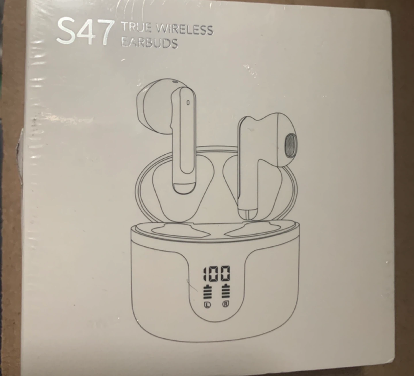 Selling a brand new pair of S47 True Wireless Earbuds, still sealed in the box! These earbuds feature Bluetooth 5.3 and IP7 water resistance, making them perfect for workouts or everyday use. Get great sound quality without the hassle of wires!