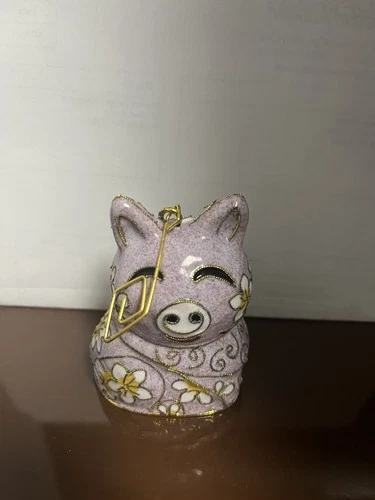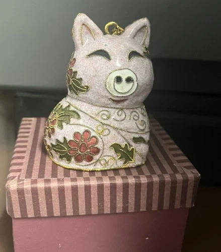 Hand Crafted Cloisonné Enameled Pig Bell ornament About 2.8”tall Lightweight non breakable Please pick pink with red flowers or pink with white flowers - add to notes in the order !! Copper base enameled by hand Lasting beautiful heirlooms Comes gift boxed Discount is available on qty - check store for other items