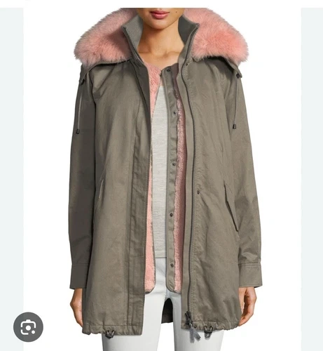DEREK LAM UTILITY JACKET GREEN PARKA PINK FOX FUR XL