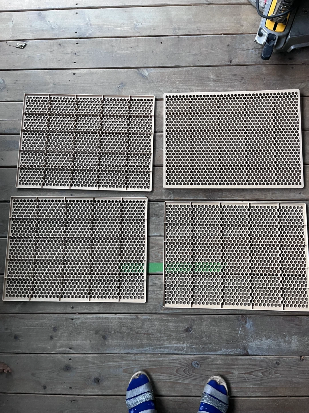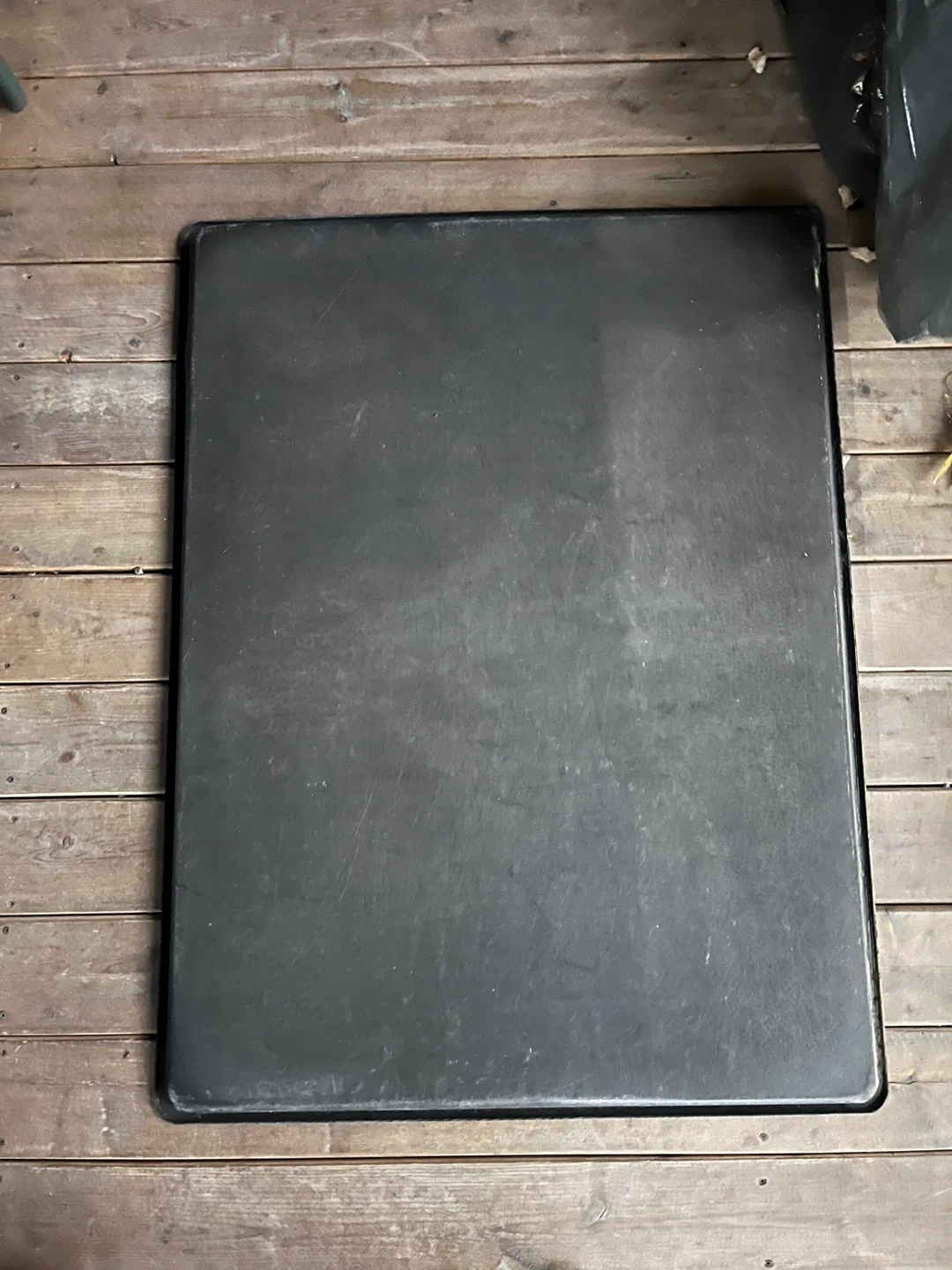 MEEXPaws dog grass pee pad, extra large size (45x34 inches). It's designed for dogs weighing 60-100 lbs. Perfect for indoor and outdoor use! It's easy to clean. The strong rubber backing prevents tearing. Item has been cleaned and aired outside for months. Great for apartments or condos. Comes with:
