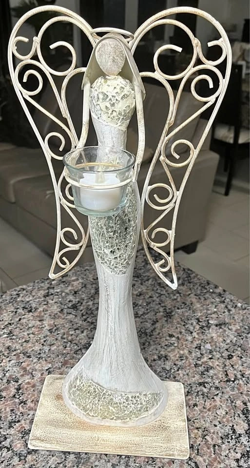 20” high 8” wide angel holding a candle with a claster of reflective mosaic glass pieces that makes brilliant lights sparkle. Excellent Christmas figurine that enhance any corner of your house. Pick up Schomberg (hwy 27 at hwy 9 - 10 min north of Nobleton)