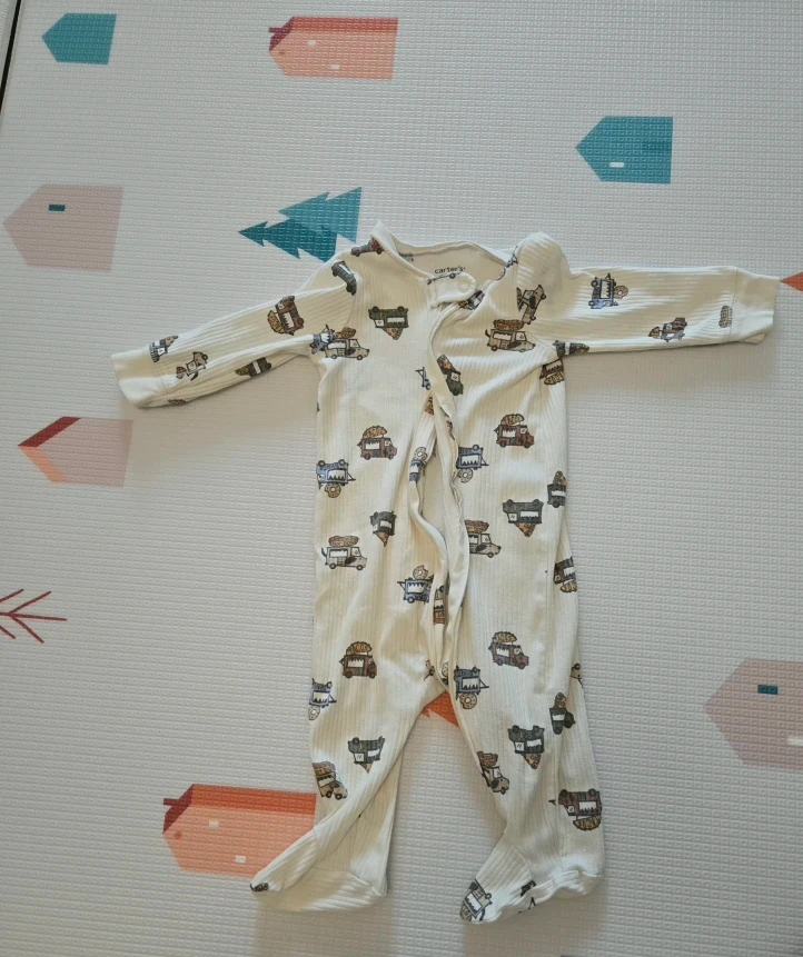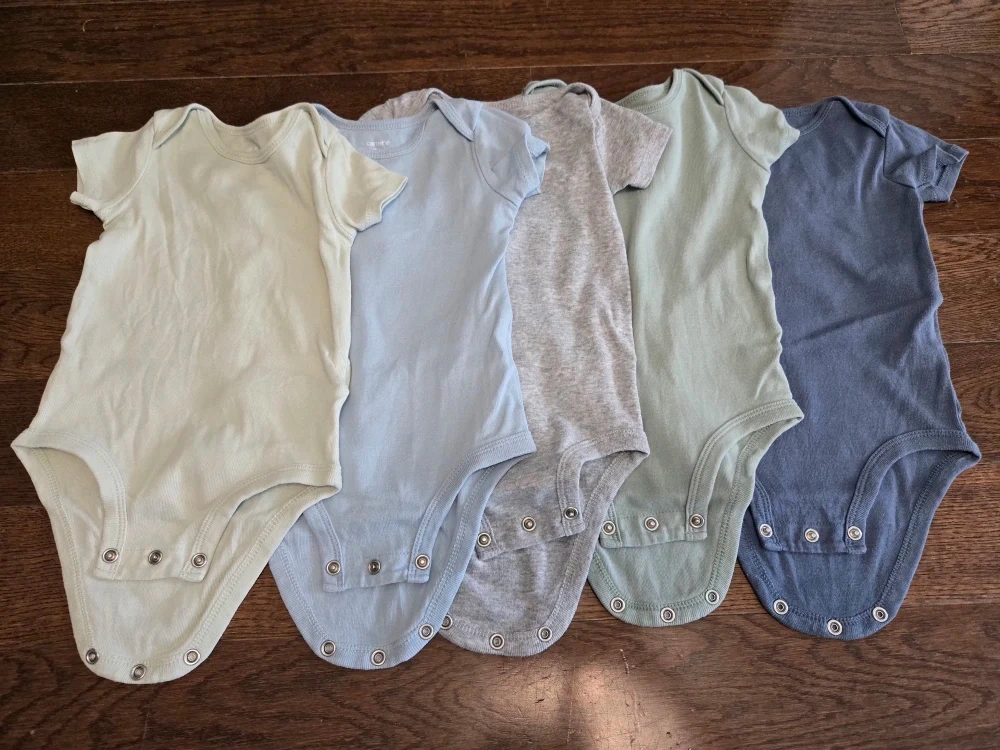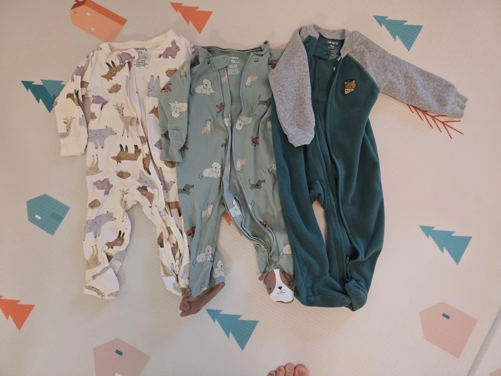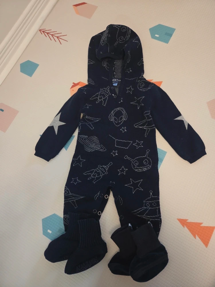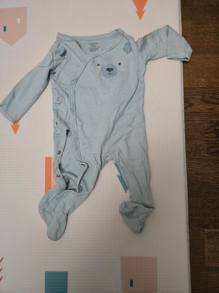 The navy knit and the blue bear striped long-sleeve onesie are brand new!