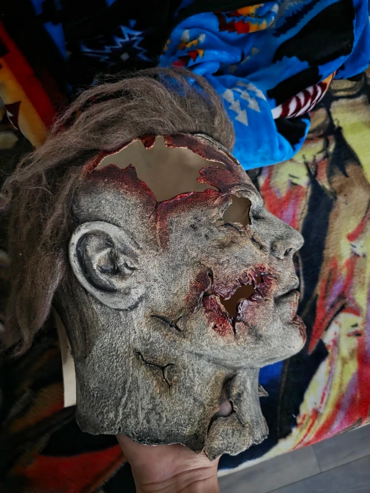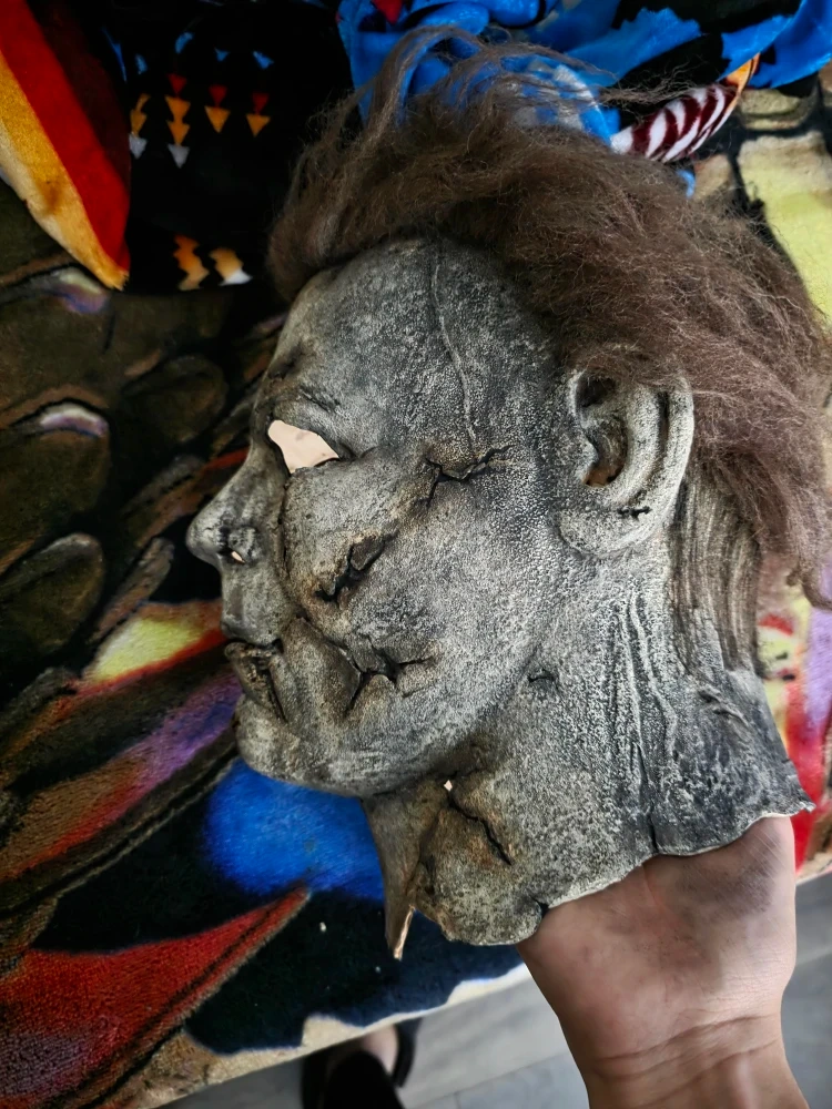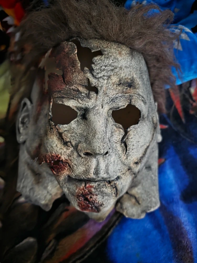 Selling a Michael Myers Halloween mask. It has a worn and distressed look, perfect for a spooky costume or display, The mask has also been rehauled.