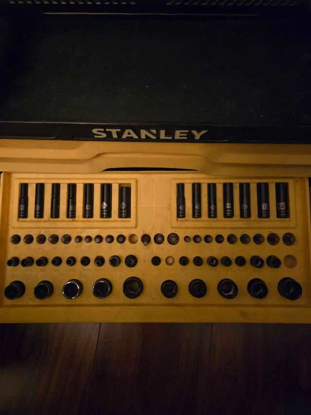 I'm selling a used Stanley tool box complete with a comprehensive set of tools. This set is perfect for both professional tradespeople and DIY enthusiasts looking for a reliable and sturdy tool storage solution. This item is in used condition, so please take this into consideration when making your purchase.