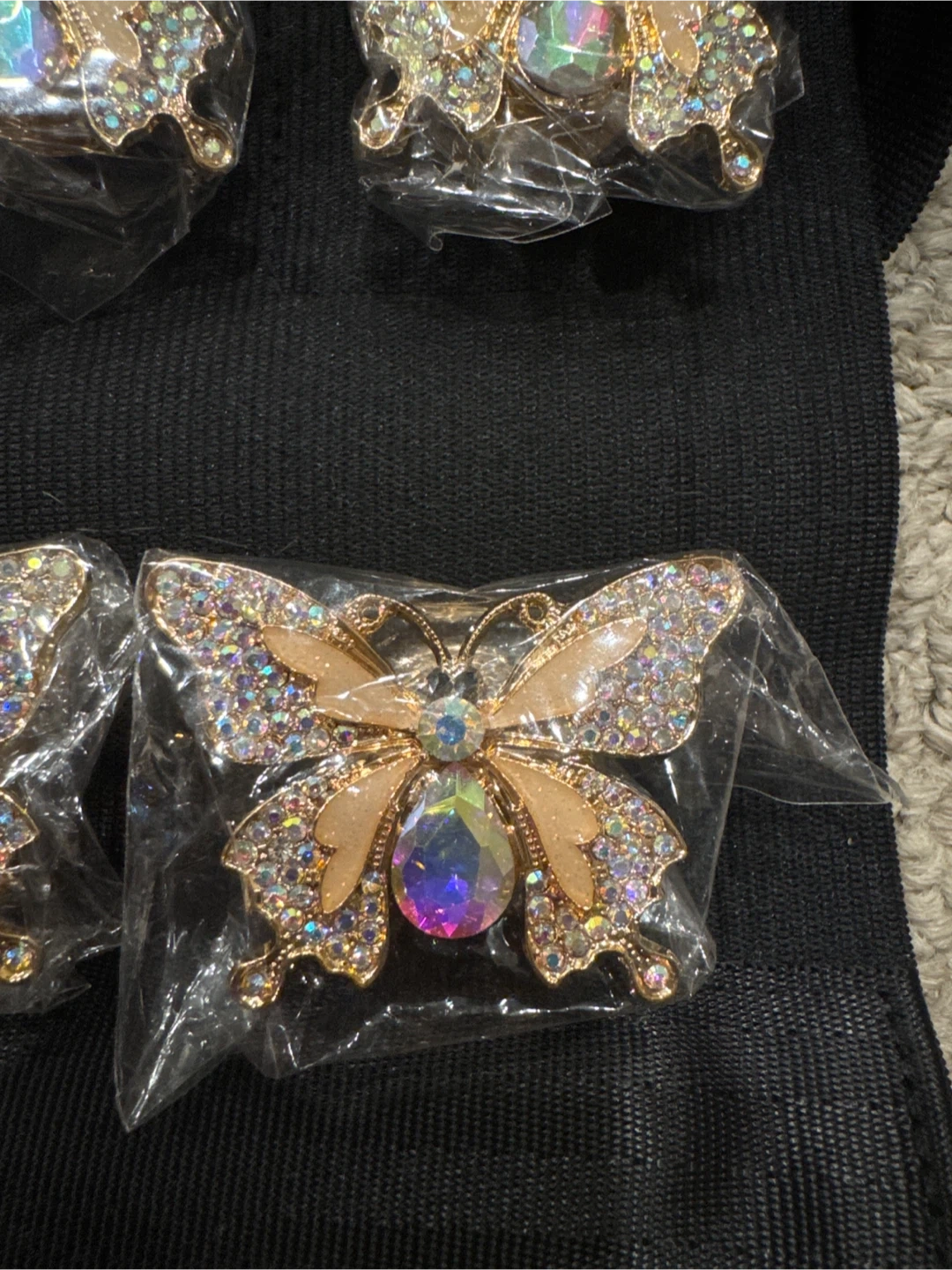 I'm selling these new butterfly drawer knobs. They have a beautiful design with rhinestones and a colourful gem in the centre. Perfect for adding a touch of sparkle to your furniture!