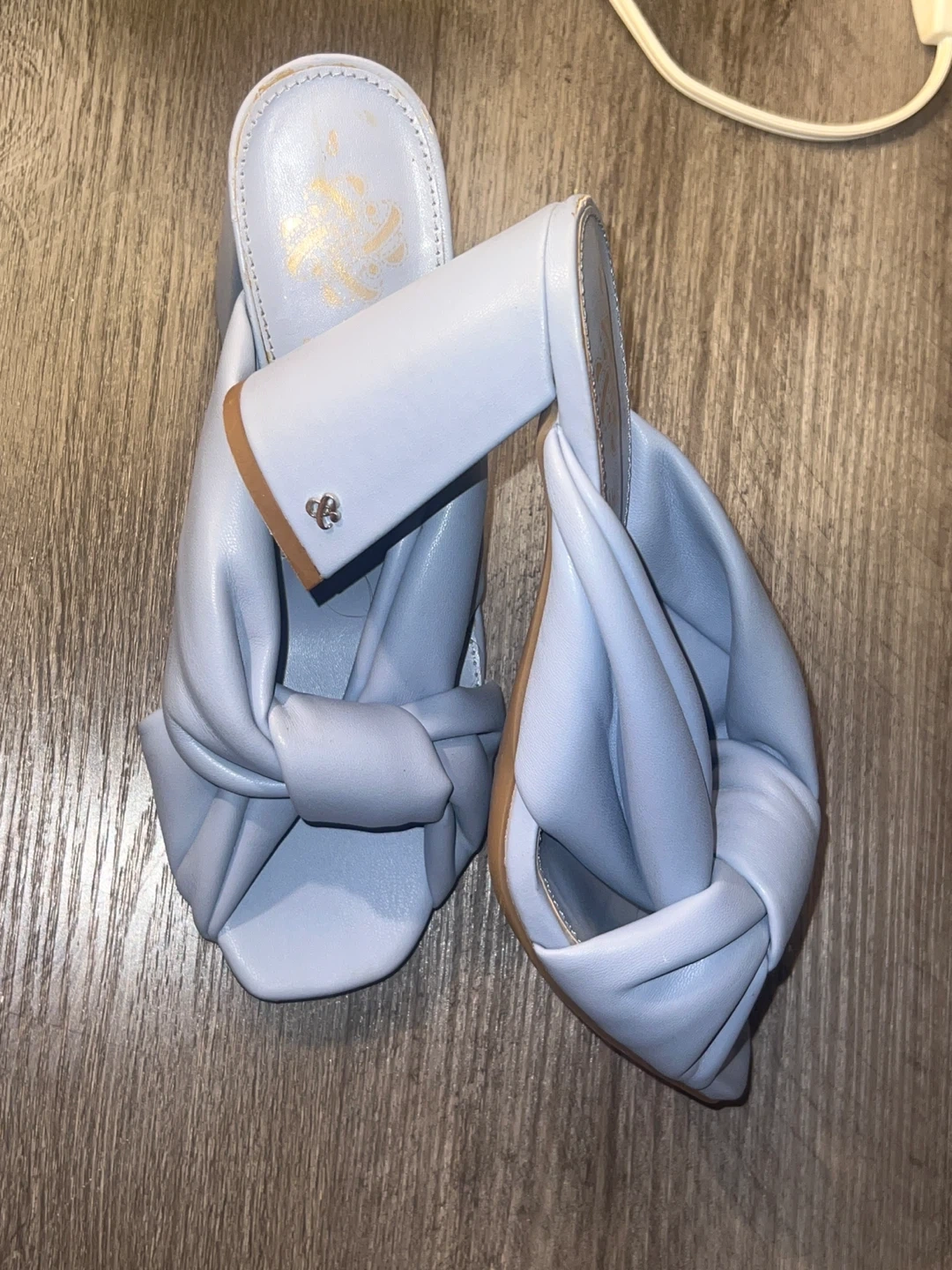 Cute pair of Sam & Libby mules in a lovely light blue colour! They're a size 8 and feature a stylish knot detail on the front. Perfect for adding a touch of elegance to your outfit!