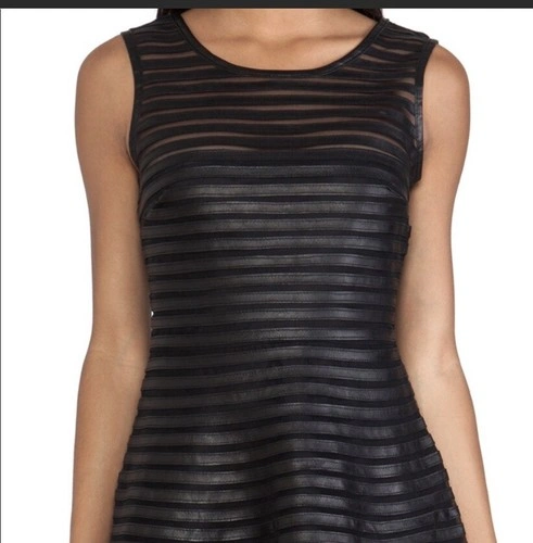 PARKER Black Leather Mesh Panel Fitted Dress Size XS