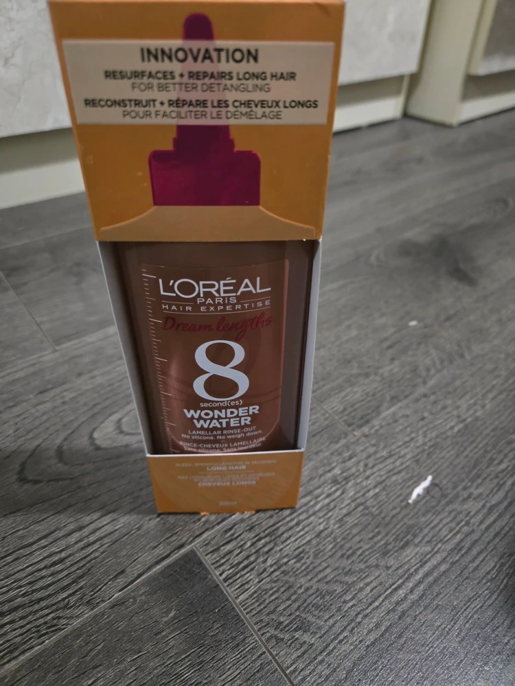 Selling a bottle of L'Oréal Hair Expertise Dream Lengths 8 Second Wonder Water! This liquid formula works as soon as it comes in contact with wet hair to instantly detangle for sleek, smooth lengths in just 8 seconds. It's formulated with technology that uses moisturizing agents and amino acids, targeting damaged, rough areas forming thin layers called Lamellas to smooth length's surface