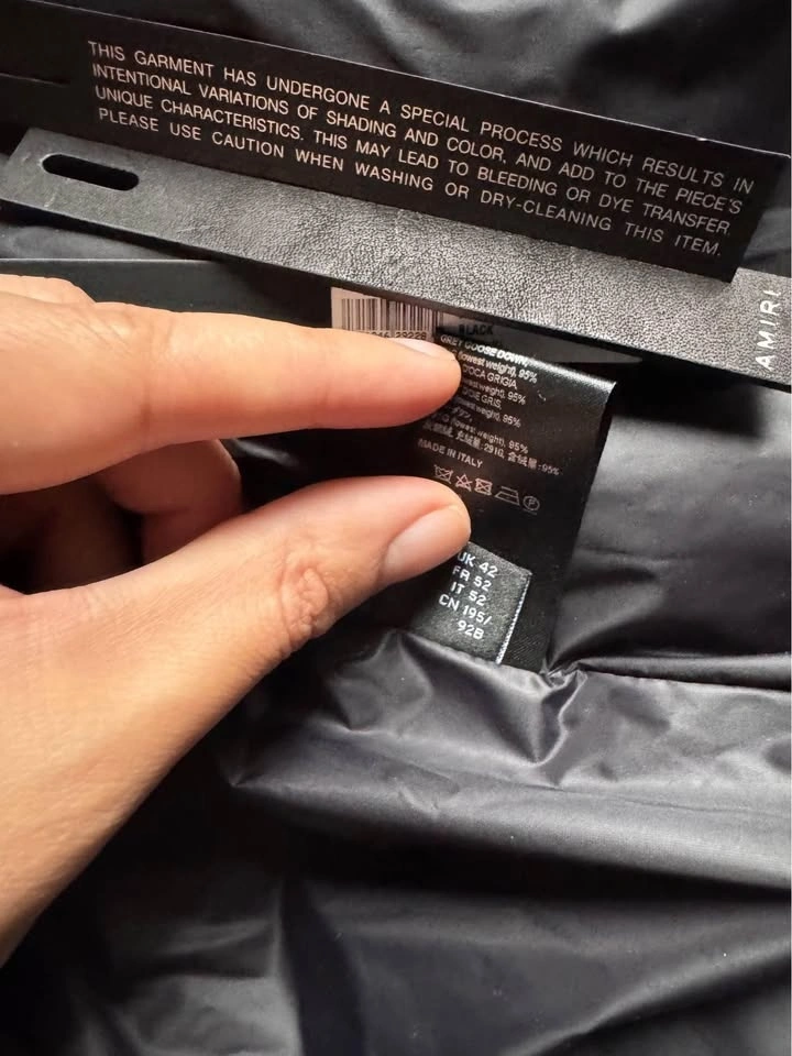 Original AMIRI unisex Down Puffer Jacket Size XL Black Removable Hood Made in Italy