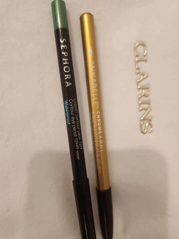 New Sephora Crayon Contour Yeux 12H contour eye pencil in waterproof. Also included is an Annabelle Chrome Kohl eyeliner and a Clarins makeup bag