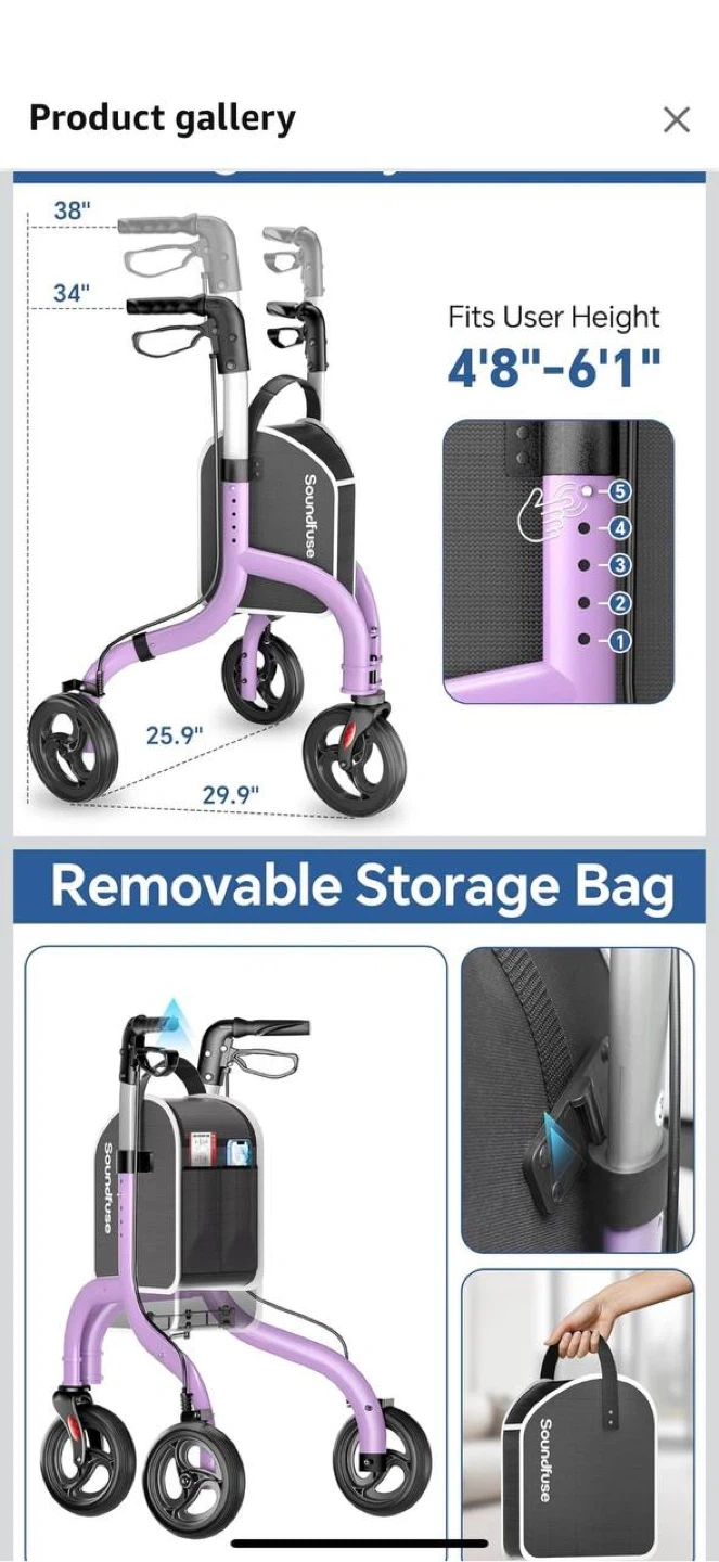 💜 Soundfuse 3-Wheel Rollator Walker – Purple (559)– BRAND NEW – $150
