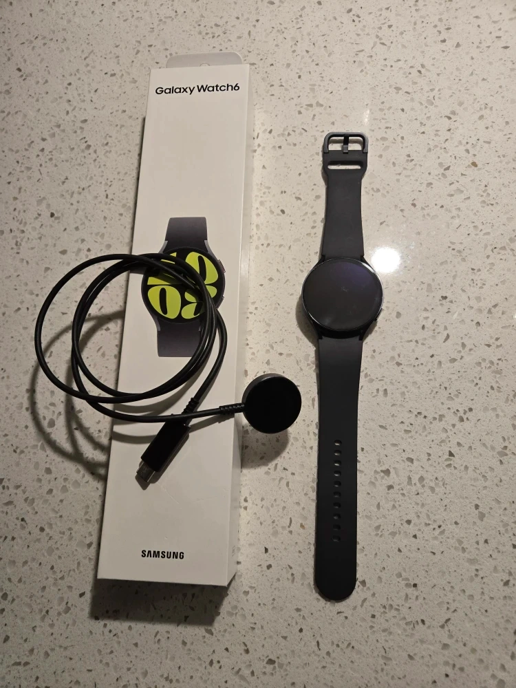 Selling a Samsung Galaxy Watch 6 44mm in black! It comes with the original box and charger. This watch is in excellent condition and ready for a new owner. Feel free to message me with any questions!
