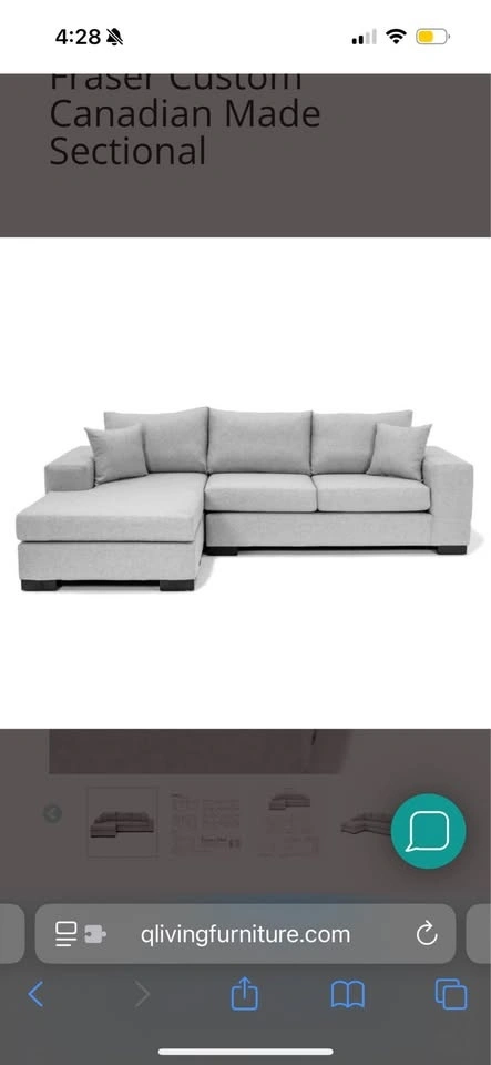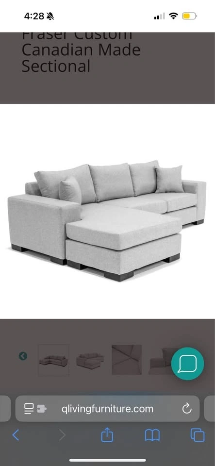 Q living Canadian made Sectional couch reversible