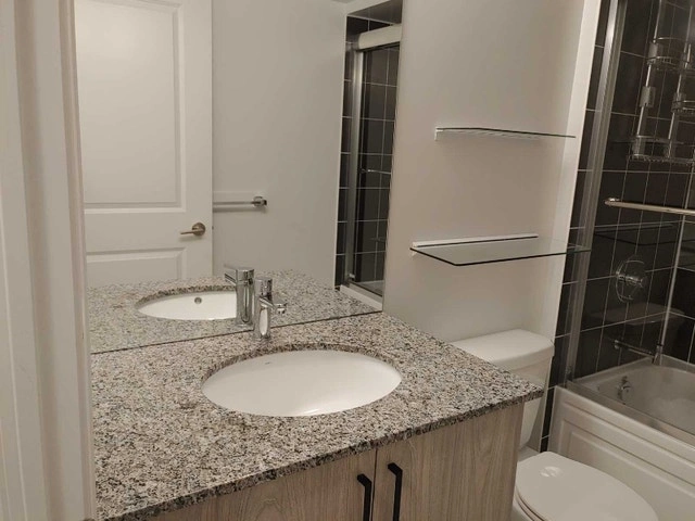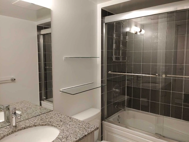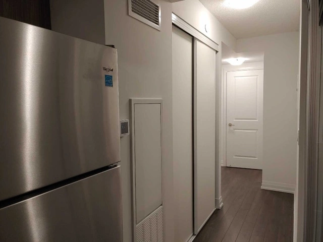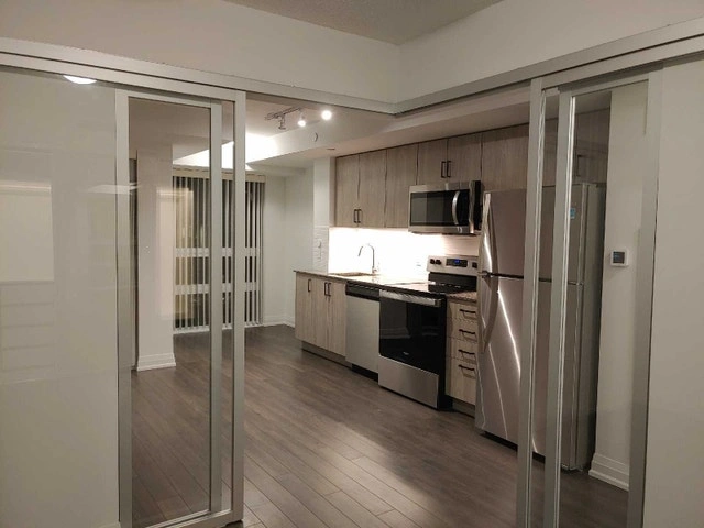Beautifully upgraded 1-bedroom + den condo in the heart of Scarborough, offering a perfect blend of comfort, modern style, and everyday convenience. This bright, contemporary suite features an open-concept layout with floor-to-ceiling windows, sleek laminate flooring, and a spacious balcony showcasing stunning CN Tower views. The kitchen is designed for both function and flair, featuring stainless steel appliances, quartz countertops, soft-close drawers, generous storage, and under-cabinet lighting—ideal for cooking or entertaining. The bedroom includes custom closet organizers with mirrored doors for effortless storage, while the bathroom features a clean, modern glass sliding shower door—no outdated curtains needed. Residents enjoy access to premium amenities, including a fully equipped fitness centre, rooftop pool, party and meeting rooms, guest suites, 24-hour concierge service, and visitor parking. Perfectly located just 10 minutes from Scarborough Town Centre, Centennial College, and the University of Toronto Scarborough, with TTC at your doorstep and fast access to Highway 401. A great option for professionals, couples, or students seeking a stylish rental in a vibrant, well-connected neighbourhood. Parking is available in the area. Available for immediate occupancy. Tenant to pay hydro additionally, roughly $50 per month. Please reach out for a showing. Thank you