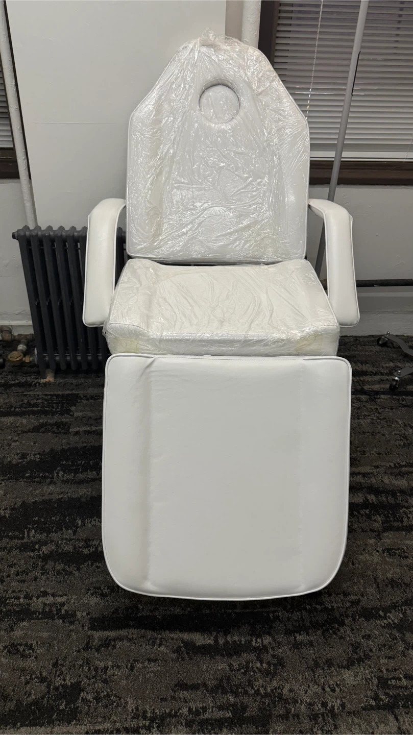 Selling a white esthetician bed/chair. It's in great condition and ready to use for your spa or salon! It features a comfortable design and adjustable settings for various treatments. Perfect for facials, massages, and more