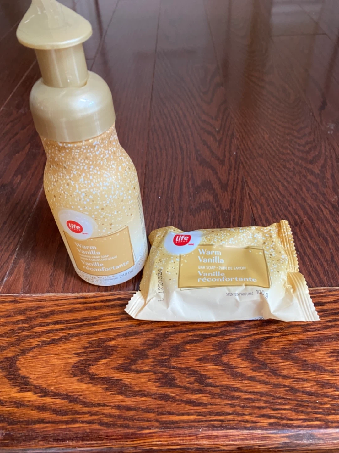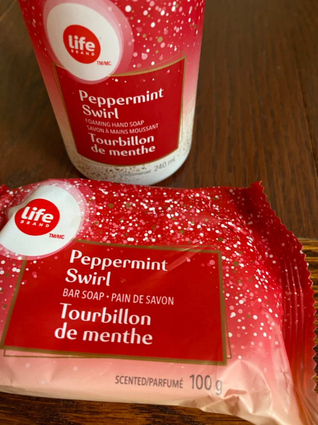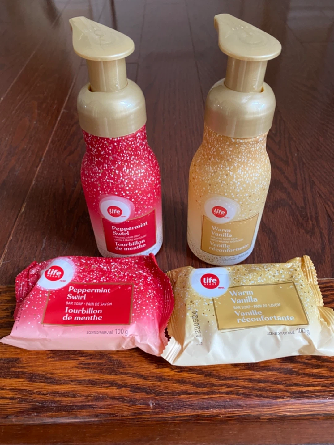 Selling a set of Life Brand soaps in two delightful scents: Peppermint Swirl and Warm Vanilla! You'll get both a foaming hand soap (240ml) and a bar soap (100g) in each scent. Perfect for adding a touch of cozy fragrance to your home Cash only