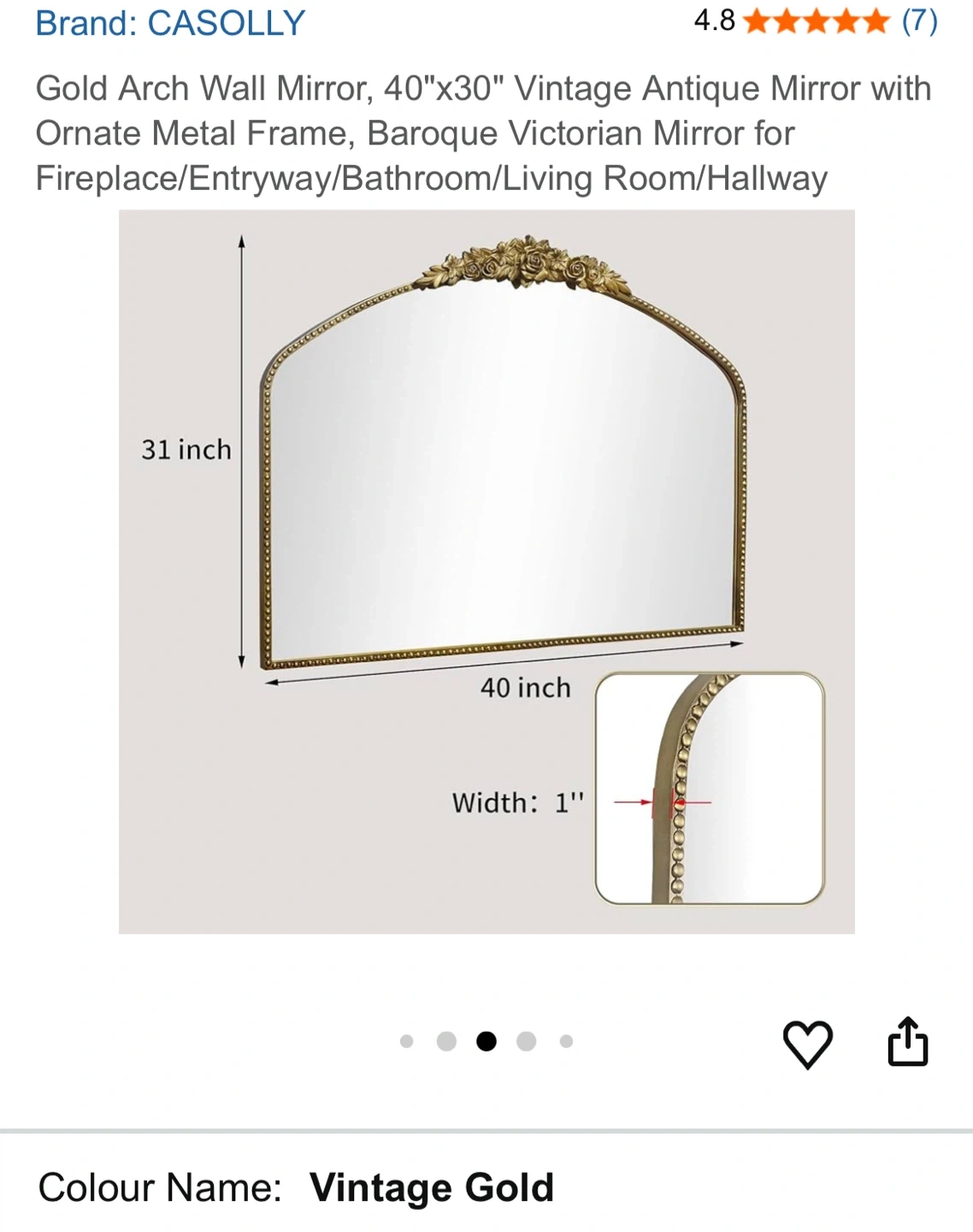 CASOLLY Gold Arch Wall Mirror 40"x30"