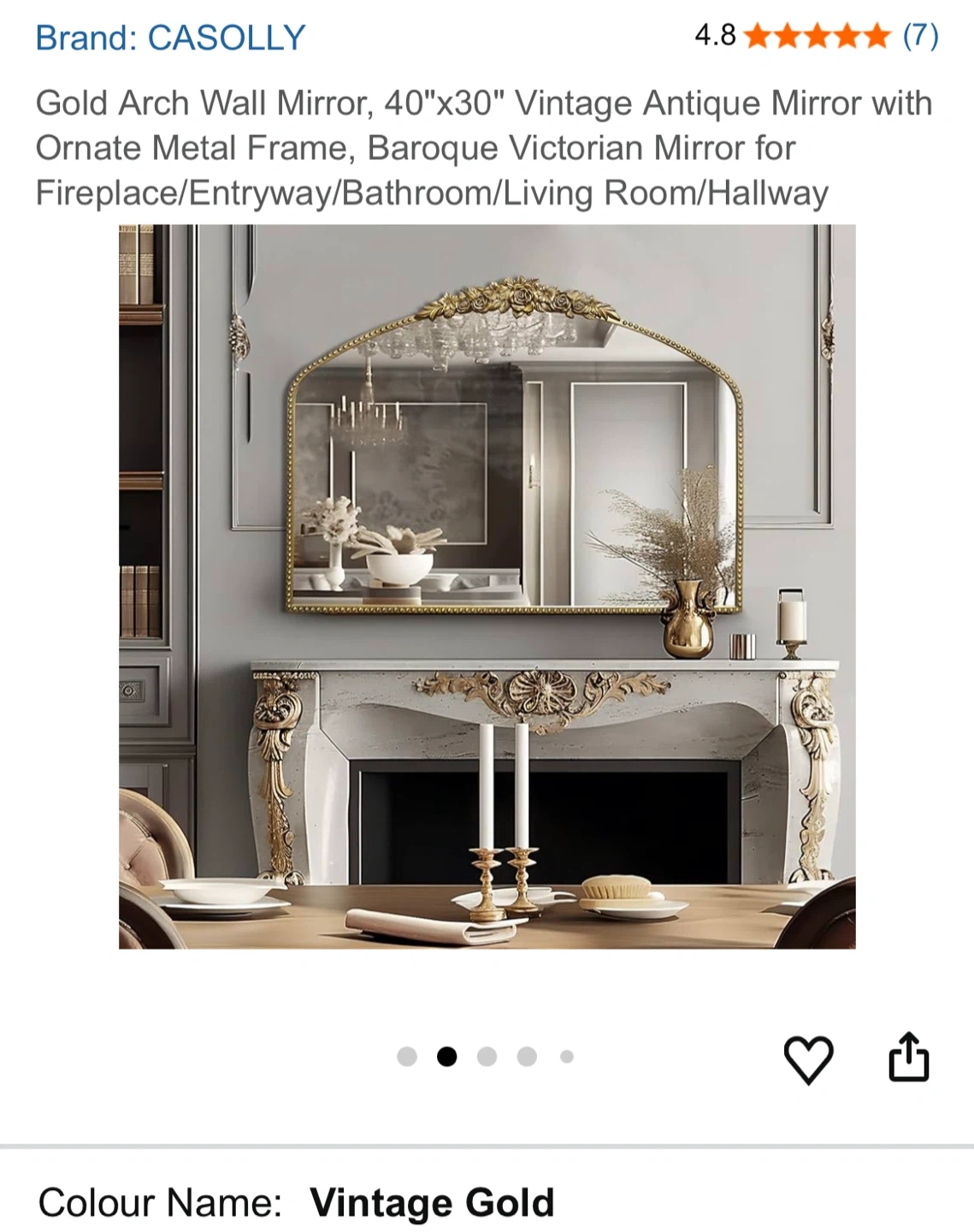 【VINTAGE ORNATE MIRROR FRAME】The wall mirror features an ornate baroque style metal frame, carved elegant wreath overlay and arch, adding some traditional charm to your home decor. Makes an elegant centerpiece or display accent