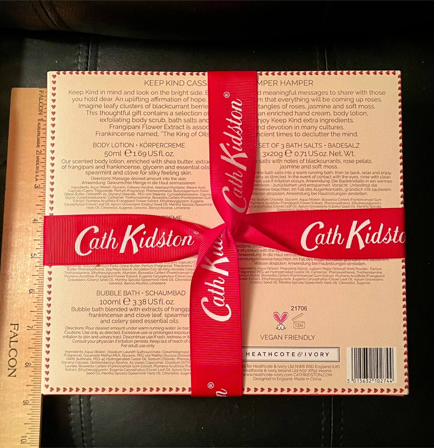 Selling a new, unopened Cath Kidston Pamper Hamper gift set! It includes body lotion (50ml), bubble bath (100ml), three bath salts (3x20g), hand cream (50ml) and body scrub (50ml). The bath salts have notes of blackcurrants, rose petals, jasmine and soft moss. The bubble bath is blended with extracts of frangipani, frankincense, clove and spearmint, and celery seed essential oils! Vegan friendly. A lovely gift for someone special in your life.