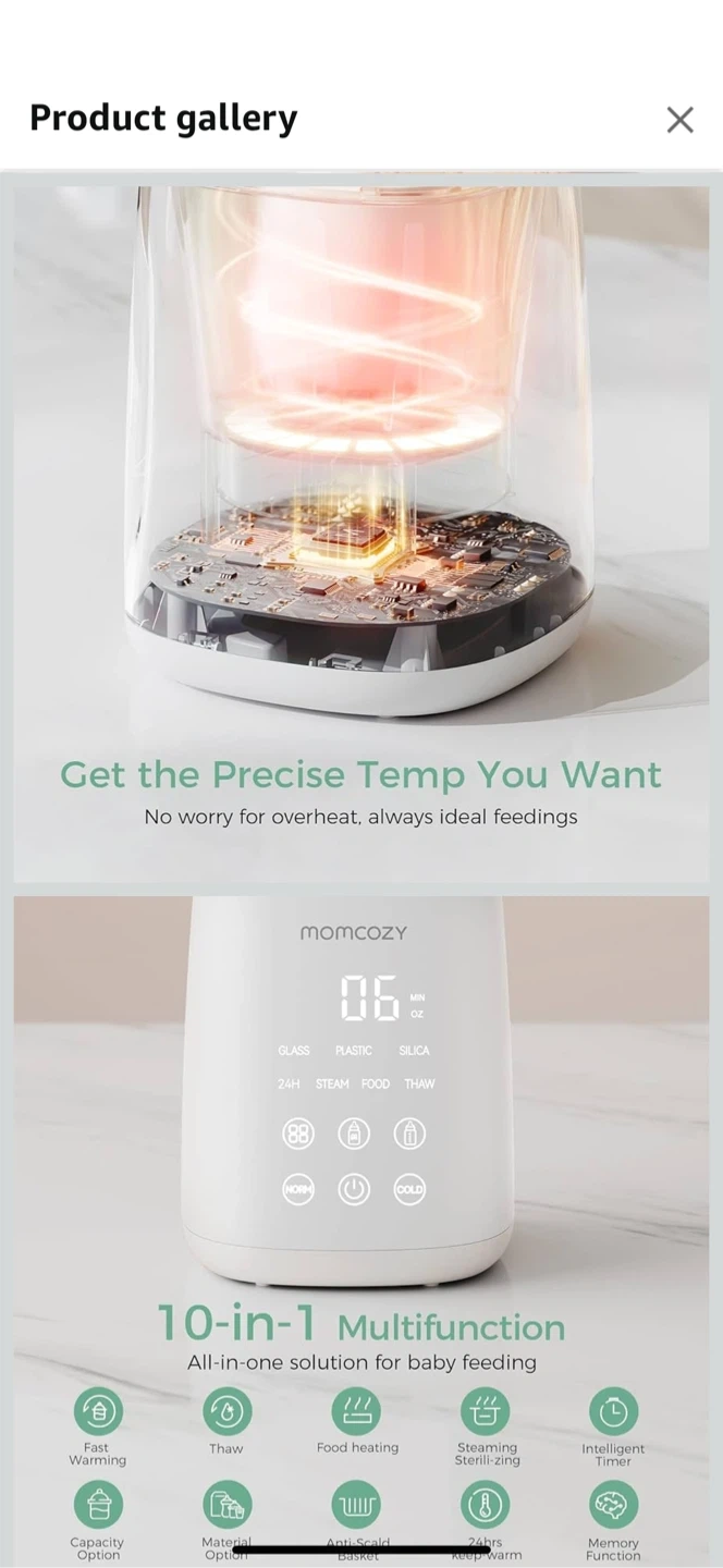 I'm selling a Momcozy bottle warmer! It warms milk in just 2-5 minutes, making it a real time saver for feedings.